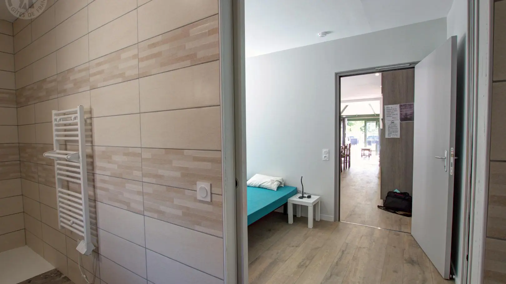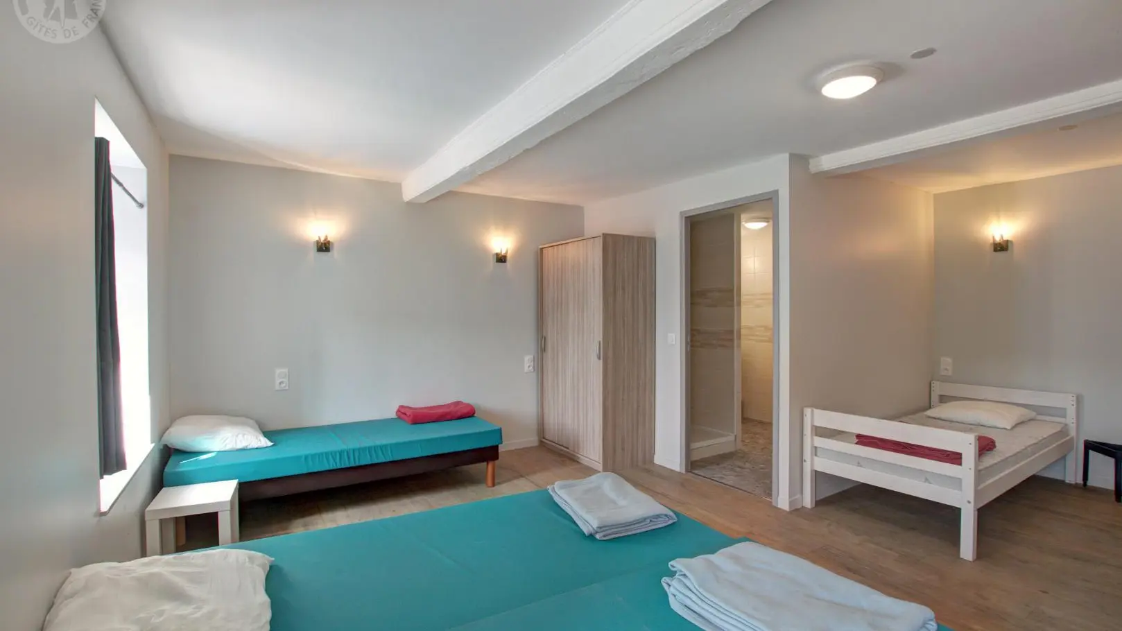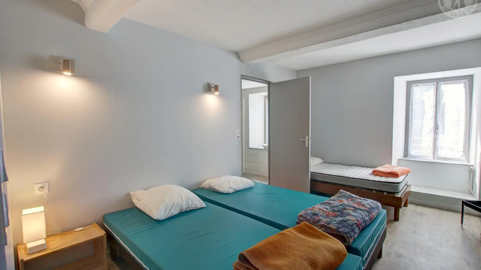 Gîte d'étape de 5 ch (2 et 3 places) avec sanitaires privatifs, situées au-dessus de l'auberge, avec coin repas et coin détente à disposition. Vous apprécierez l'accès facile, l'environnement de moyenne montagne, les balades au départ du gîte, la pêche en étang privé, la rivière sur place, les espaces de jeux et de loisirs extérieurs (boules, ping-pong, badminton), l'abri vélos...