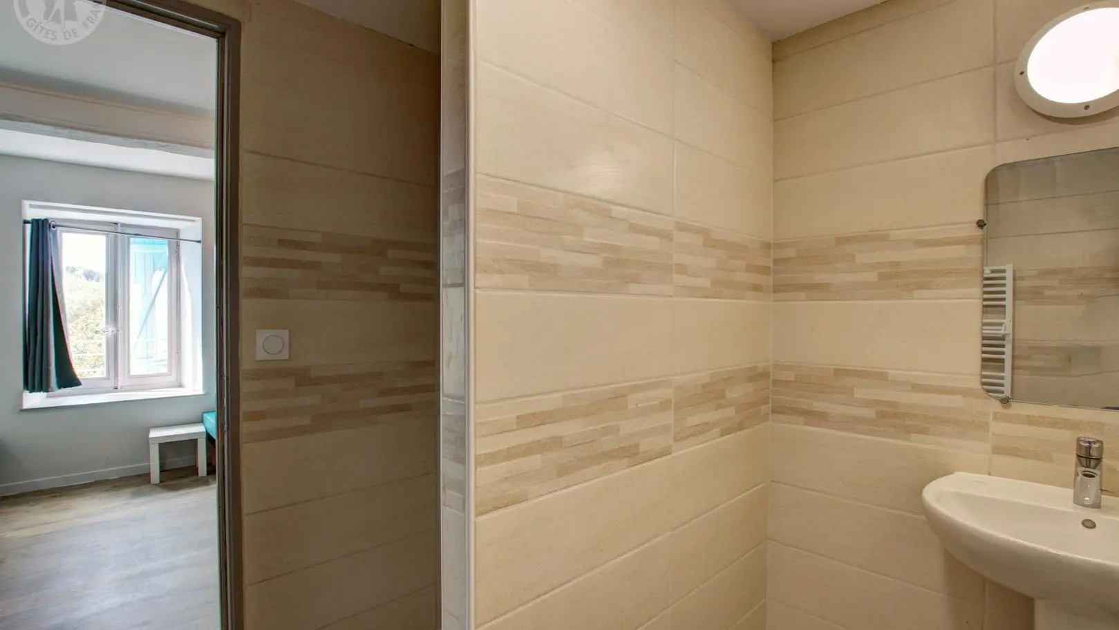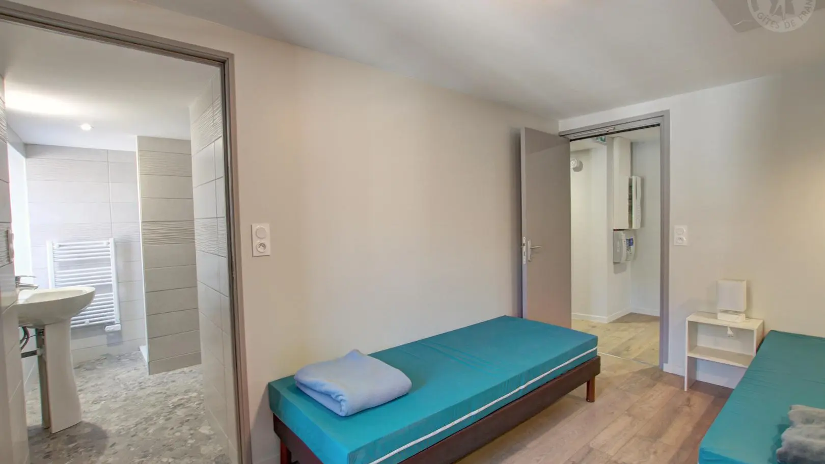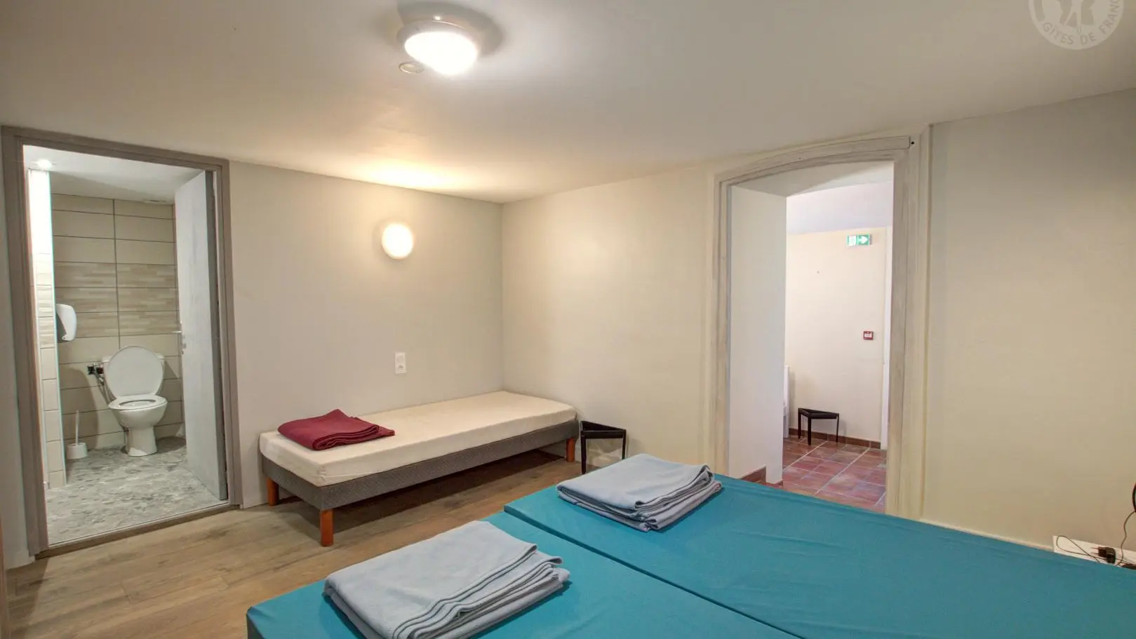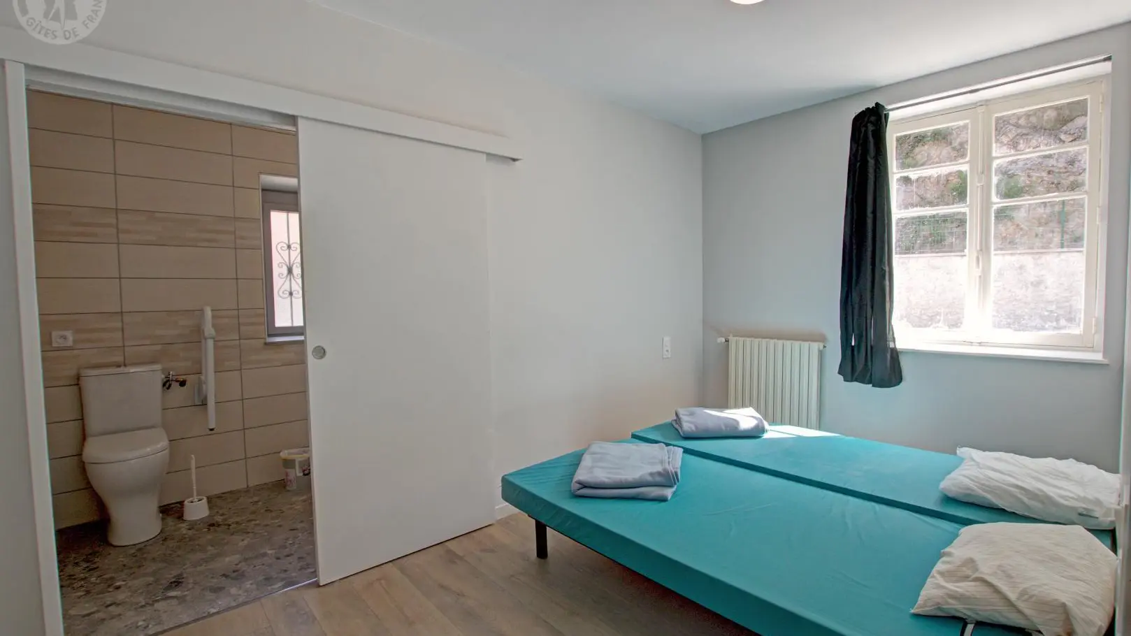 Gîte d'étape de 5 ch (2 et 3 places) avec sanitaires privatifs, situées au-dessus de l'auberge, avec coin repas et coin détente à disposition. Vous apprécierez l'accès facile, l'environnement de moyenne montagne, les balades au départ du gîte, la pêche en étang privé, la rivière sur place, les espaces de jeux et de loisirs extérieurs (boules, ping-pong, badminton), l'abri vélos...