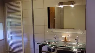 Au 1er étage d'une maison semi-indépendante, cet hébergement dispose d'une cuisine (combiné congélation, four, micro-ondes, lave-vaisselle…), d'une grande pièce de vie composée d'une salle à manger et d'un coin salon (avec deux canapés, table basse, TV et poêle à bois.), et d'une chambre avec lit en 140. La salle d'eau est équipée d'une douche à l'italienne de grande dimension. Les WC sont indépendants. A l'étage : une chambre avec deux lits en 140 et une chambre avec trois lits en 90. Une deuxième salle d'eau avec canapé-lit d'appoint et un WC indépendant. L'habitation est équipée d'une machine à laver. A l'extérieur, une cour privative et une grande terrasse couverte avec salon de jardin. Sur place : badminton, baby-foot, ping-pong-, pétanque couverts.