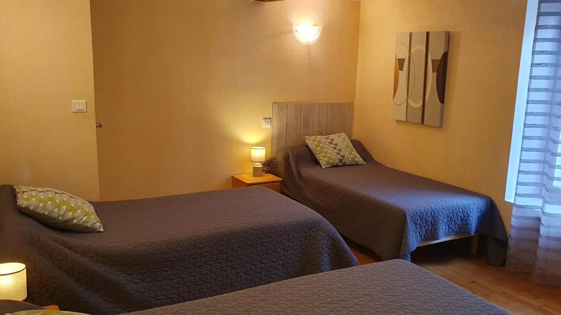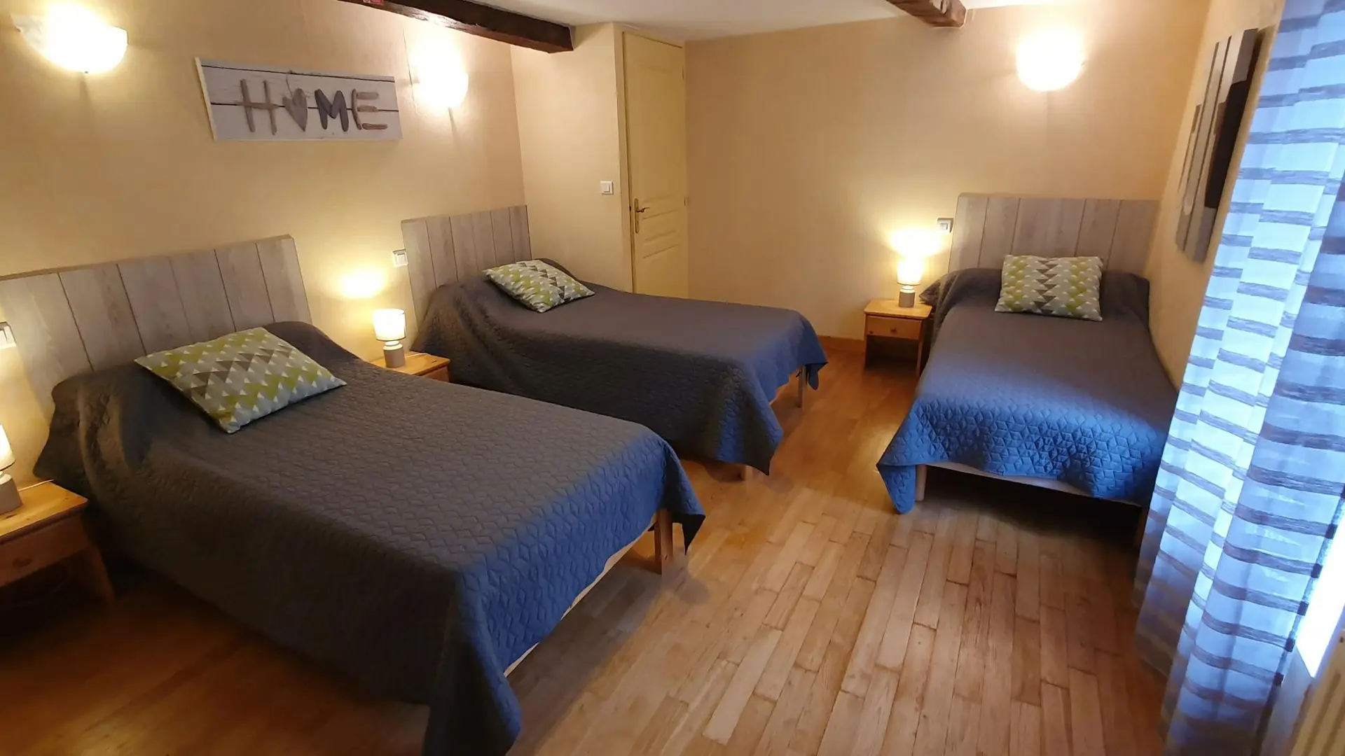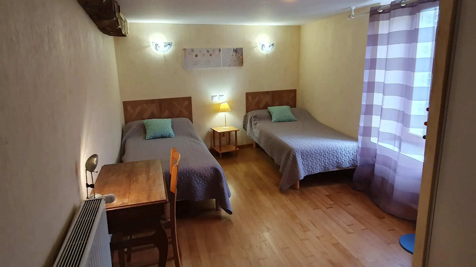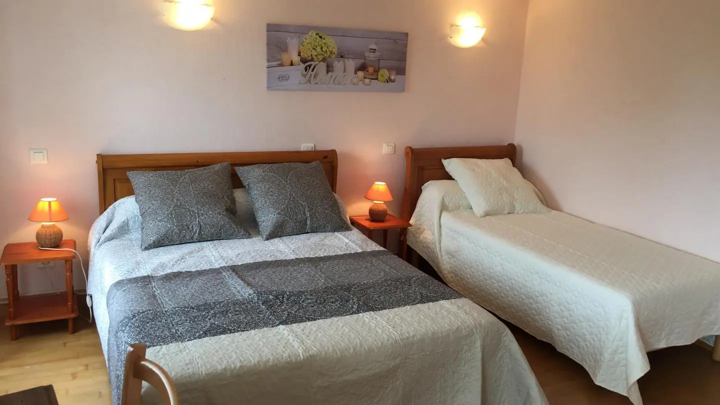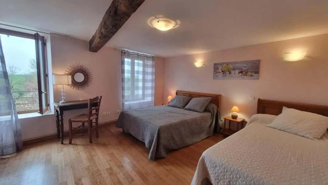 Gîte de 135 m² sur rez de chaussé et étage, cuisine, salon avec cheminée, 3 chambres. Chauffage central. Possibilité de louer les 2 gîtes. A89 5 km. Gîte communiquant avec le gîte 3258.