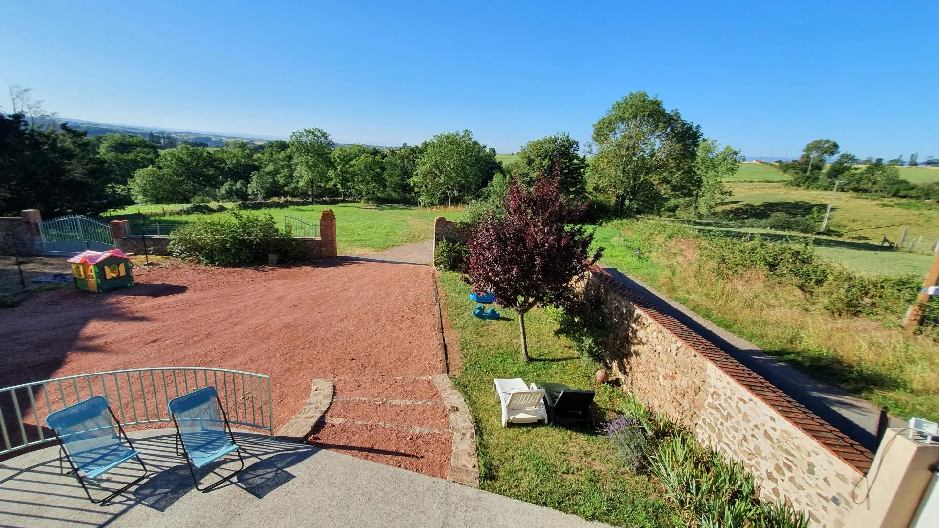Orientées plein sud avec vue sur la campagne, en surplomb du fleuve Loire, grande ferme en pierres du 18° siècle comprenant 2 gîtes dos à dos. Accès et terrain privatifs et indépendants, cour fermée 250 m², terrasse.