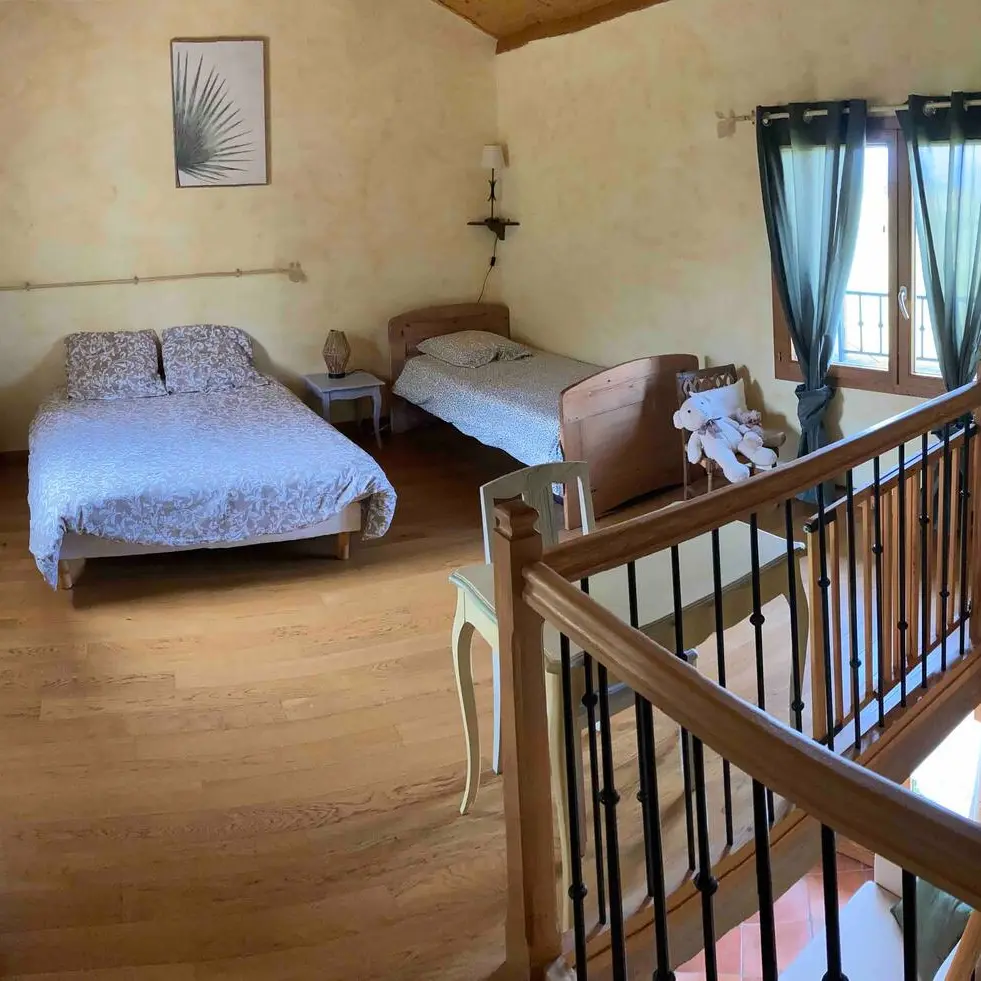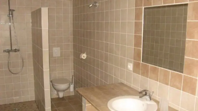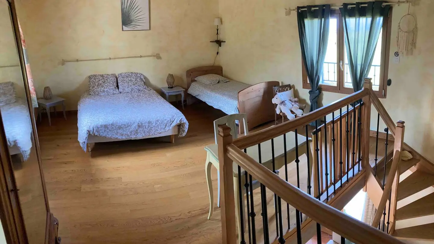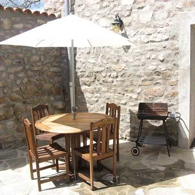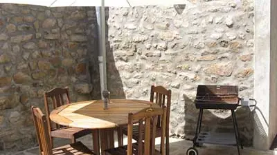 Ce gîte se compose d'un rez de chaussée avec un étage. Il comprend un séjour avec un coin cuisine et coin salon (poêle à bois), une grande chambre en mezzanine, salle d'eau avec douche à l'italienne, sèche-serviettes, 2 WC, aspiration centralisée, planchers chêne et pierres apparentes, terrasse privative et jardinet.