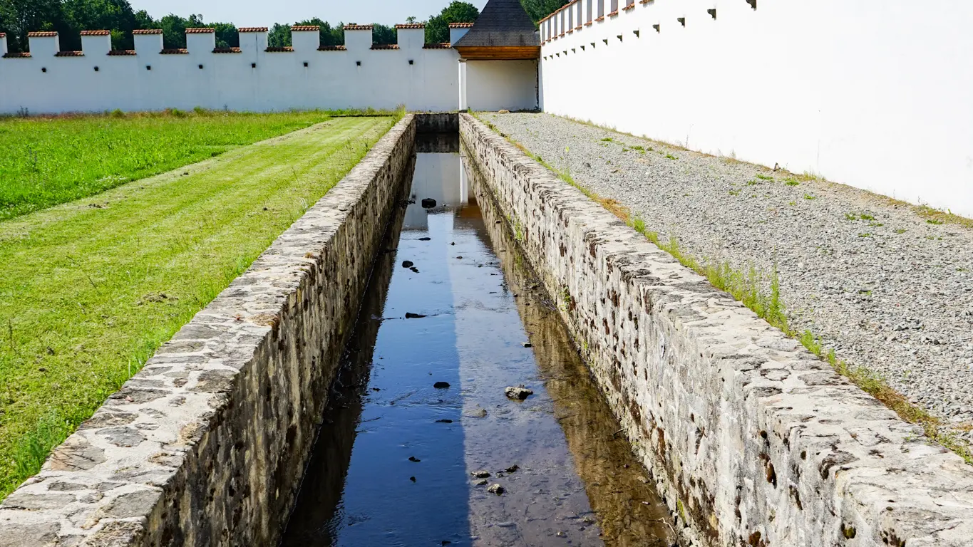 Le mur d'enceinte crénelé et ses pavillons d'angle ont été reconstruit entre 2009 et 2011.