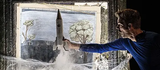 On joue avec les outils artisanaux du théâtre, c’est-à-dire avec les corps et les âmes des acteurs et des actrices et quelques accessoires détournés de leur fonction première. On raconte les déboires de ces entreprises folles d’envoyer des hommes dans l’espace.