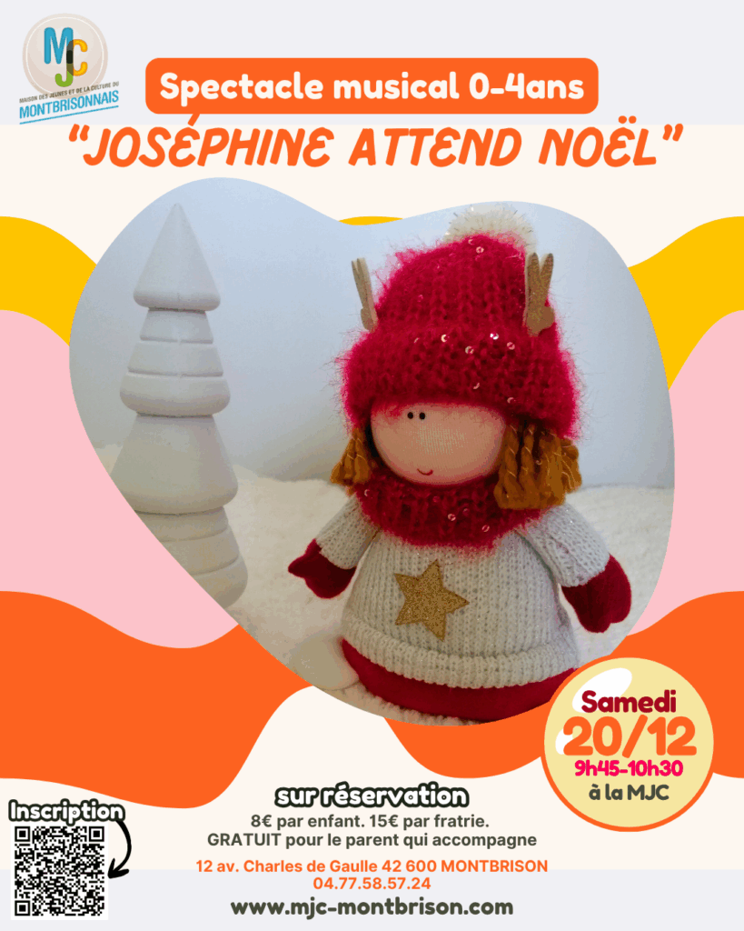 Plongez dans la magie de Noël à la MJC avec « Joséphine attend Noël », un spectacle musical tendre et lumineux conçu spécialement pour les enfants de 0 à 4 ans et leurs familles.