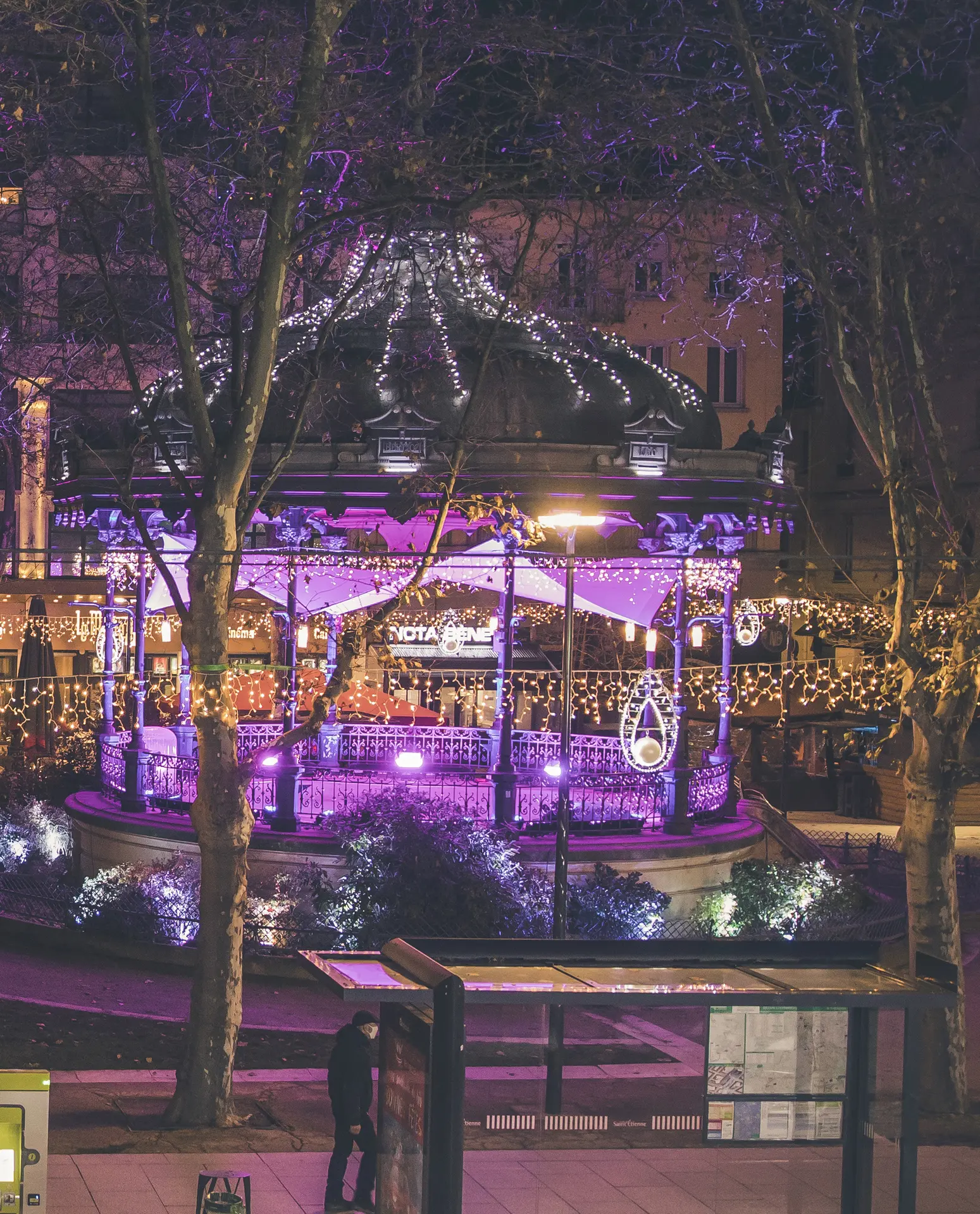 Prenez la pose sous le kiosque décoré aux couleurs de Noël !