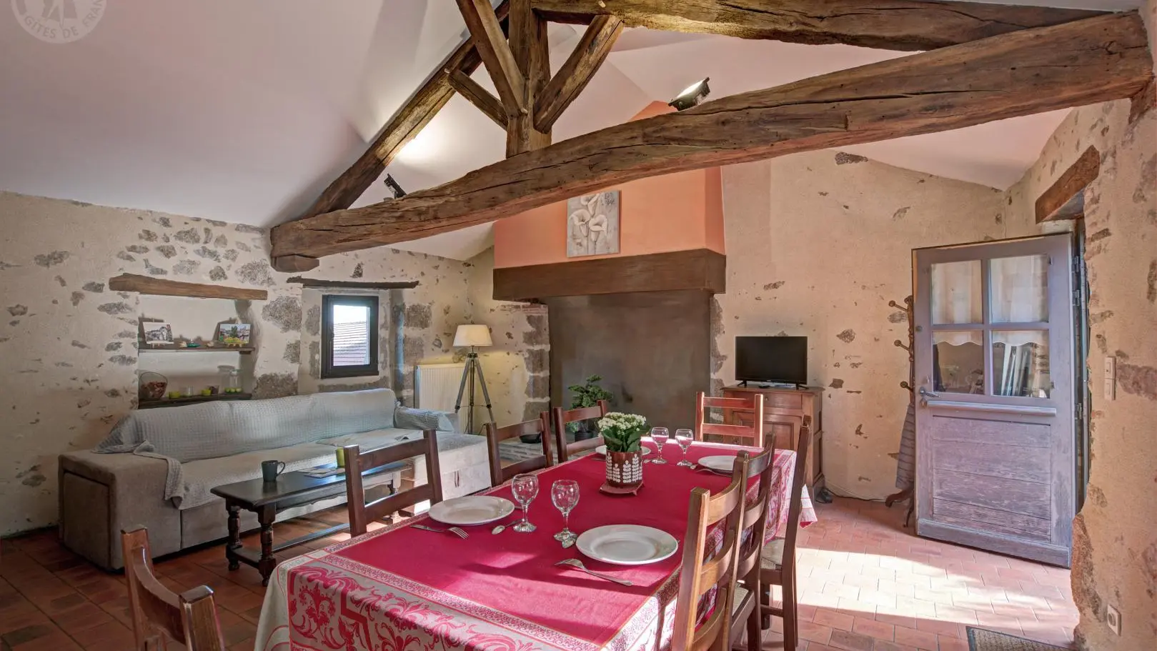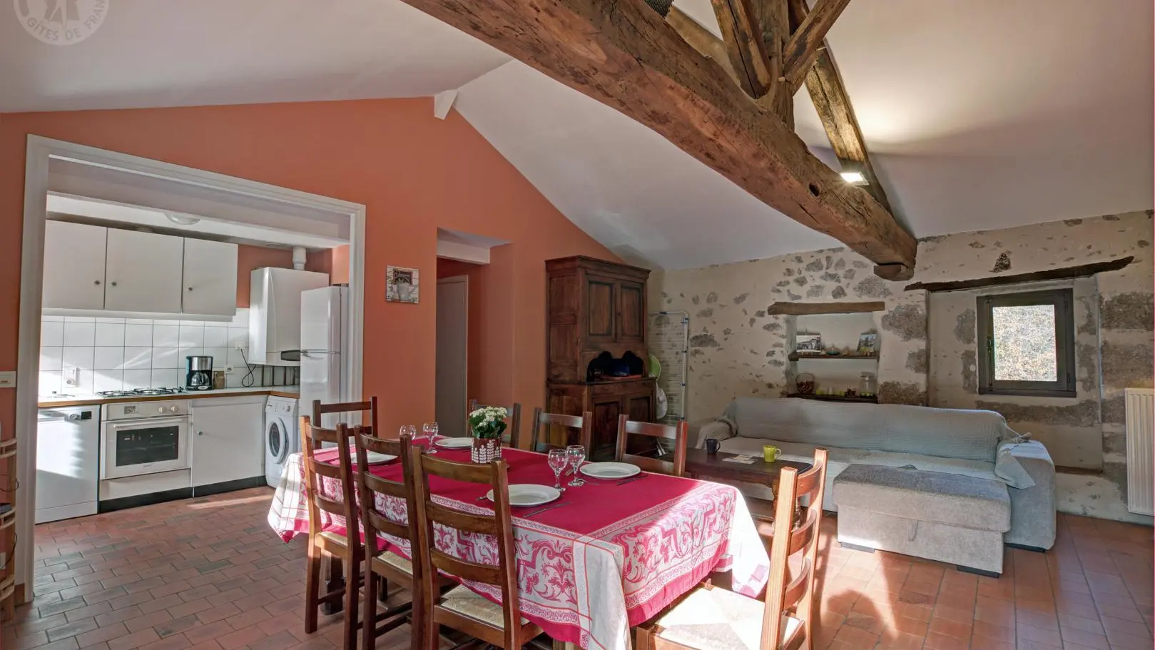 Gîte de 65 m² de plain-pied, salle de séjour-coin cuisine avec cheminée d'ornement, 2 chambres (lit bébé sur demande). Chauffage central. Charges facturées suivant consommation. Accueil : Mme GERANTON (04 77 64 31 76). Gîte regroupable avec le gîte 3142.