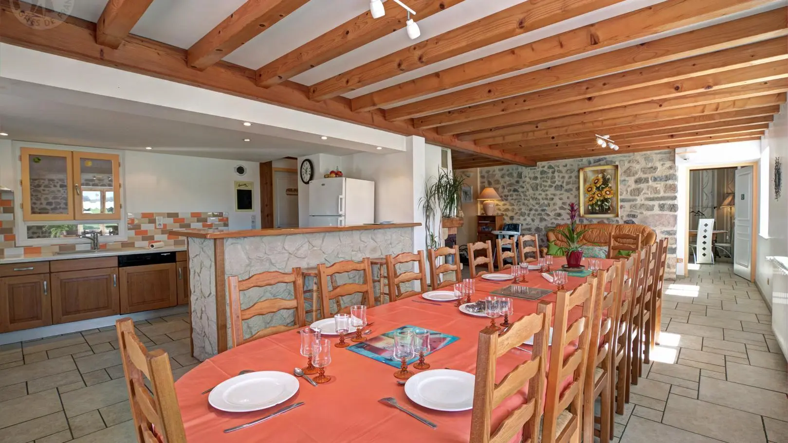 Très belle ferme en pierre entièrement rénovée sur terrain privatif de 500 m² avec terrasse couverte et dépendances. Vous apprécierez le confort, la décoration de ce gîte, son calme qui en font une maison idéale pour des séjours en famille ou entre amis.