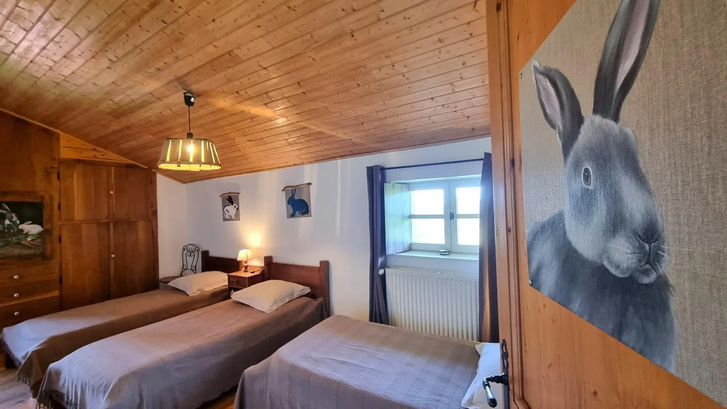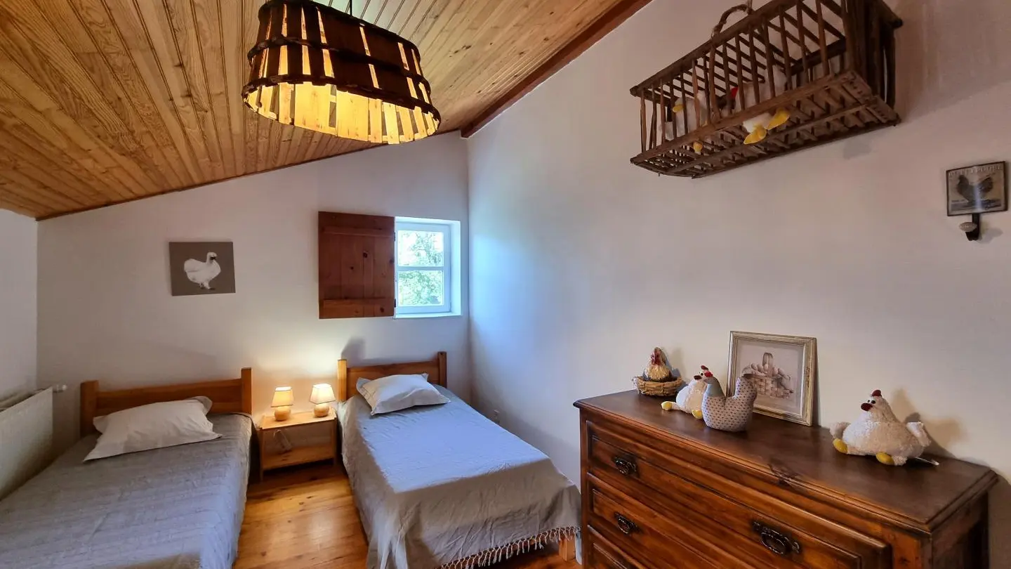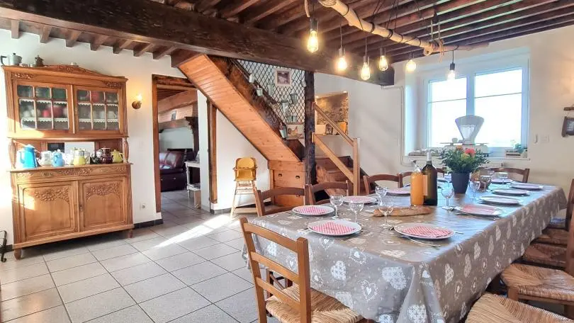 Découvrez ce gîte idéal pour 12 personnes ! Avec ses 150 m² sur deux niveaux, Le Tilleul allie confort et fonctionnalité. Au rez-de-chaussée, une salle à manger conviviale jouxte la cuisine équipée, complétée par une salle d'eau et des WC. À l'étage, quatre chambres personnalisées accueillent familles et amis. La chambre « Les Lapins » offre trois lits simples (90x190 cm), parfaite pour les enfants ou les séjours entre amis. La chambre « Les Poules » propose trois lits simples (90x190 cm) ainsi qu'un lit tiroir en couchage d'appoint. La chambre « Les Moutons » combine un lit double (140x190 cm) et deux lits simples dont un en superposé, idéale pour une fratrie. Enfin, la chambre « Le Potager » dispose d'un lit double (140x190 cm) et d'un lit simple (90x190 cm) en appoint. Une salle de bains avec baignoire et WC complète ce niveau, garantissant confort et praticité pour tous. Une location de vacances avec nature et patrimoine à Grammond dans la Loire ! Séjourner au Tilleul, c'est plonger au cœur des paysages variés des Monts du Lyonnais : prairies, bois et champs se succèdent pour offrir d'infinies balades. La situation privilégiée, entre Lyon et Saint-Étienne, permet d'alterner randonnées et découvertes culturelles, du patrimoine architectural marqué par l'Antiquité aux villages pittoresques où l'on déguste produits du terroir. Que ce soit pour un week-end ou de vraies vacances, la Loire révèle ici toute son authenticité. Ici, on savoure le silence de la campagne et le plaisir simple de partager des moments en famille ou entre amis !