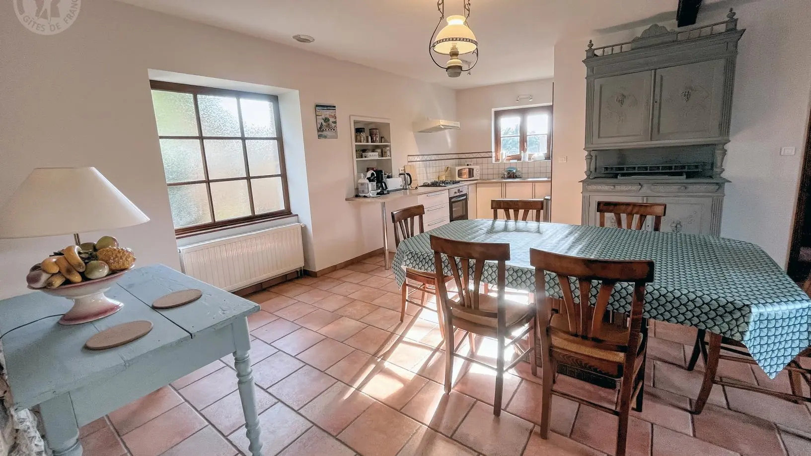 Gîte de 165m² (Rc + et.) comprenant une grande cuisine - salle à manger, un salon confortable, 3 chambres avec dressing commun, une salle de bain (baignoire et douche), 2 wc. Sur la propriété, il y a un 2ème gite (N°3201).