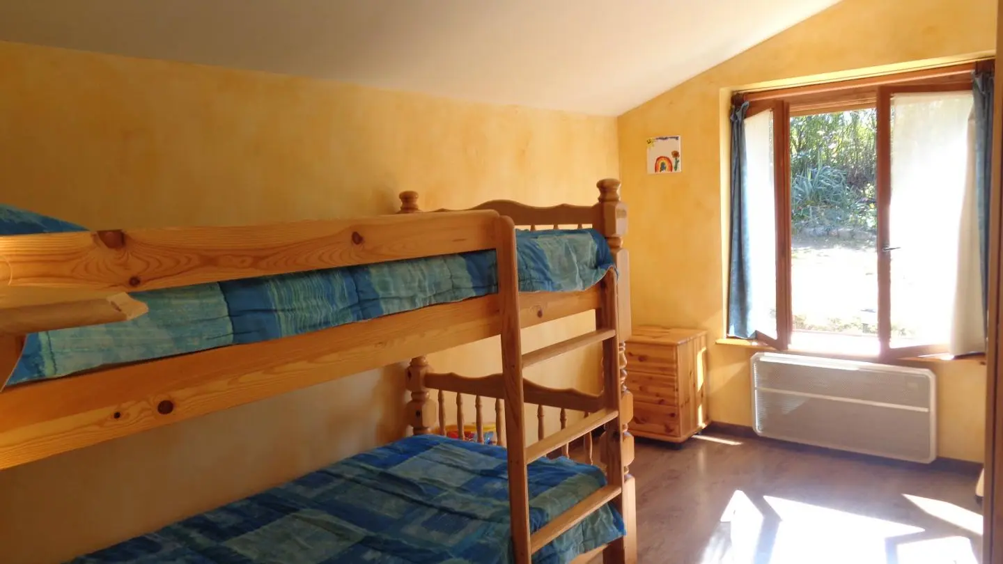 Gîte avec un agréable terrain privatif clos et arboré de 1000 m² (portique enfants), un intérieur coquet et chaleureux avec couleurs et de bois.