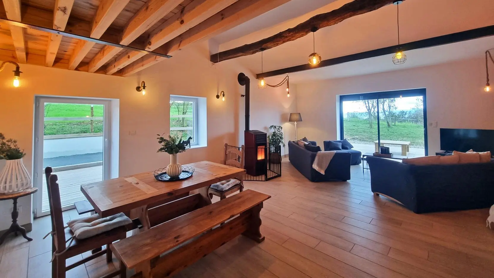 Idéal pour des moments de retrouvailles en famille ou entre amis, ce gîte propose une pièce à vivre spacieuse et conviviale, agrémentée d’un poêle à granulés qui apporte une ambiance cocooning en toute saison.