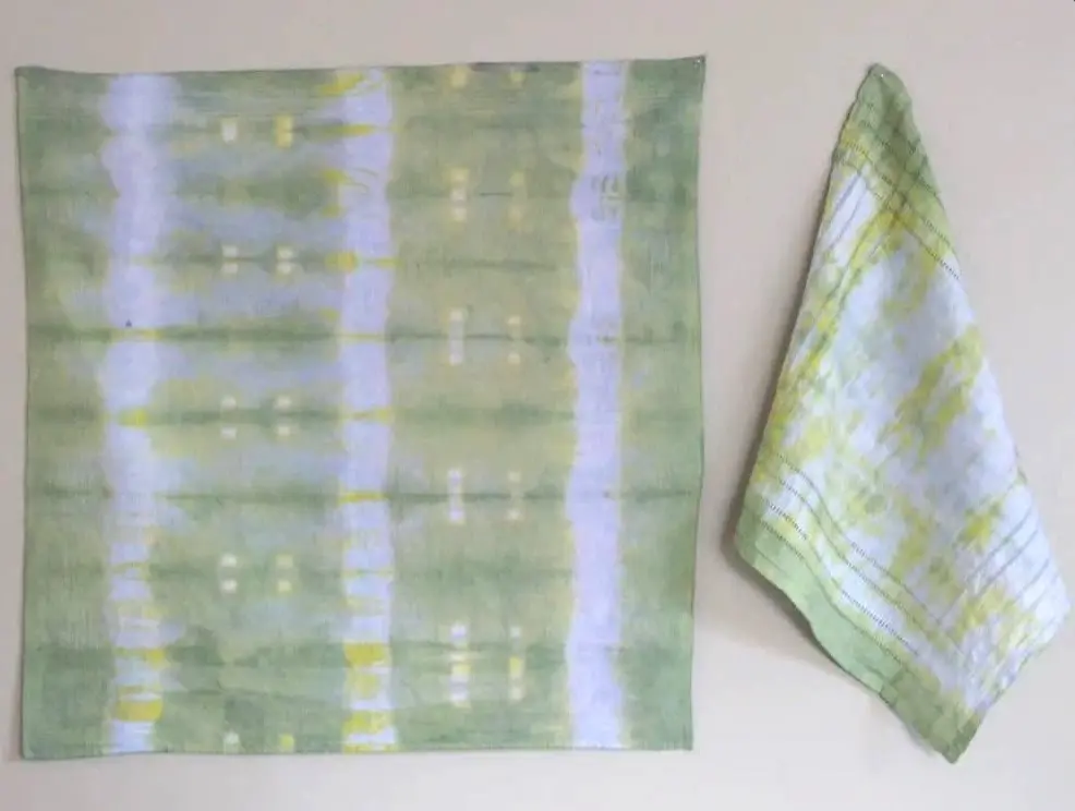 Vous repartirez de ce stage avec votre nuancier sur fibres cellulosiques ainsi que 2 carrés de coton 55 x 55 cm que vous pourrez utiliser en bandanas, serviettes de table… ou assembler chez vous pour créer une housse de coussin.