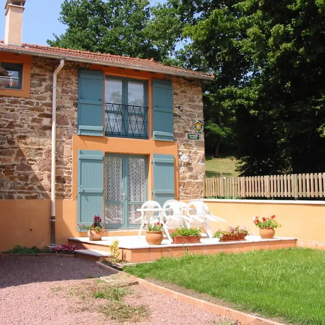 Entre Loire et Rhône, à la limite du Beaujolais Vert, découvrez le gîte de la "Vache sur le toit". La quiétude et le repos sont au rendez-vous à travers son bel environnement vert.