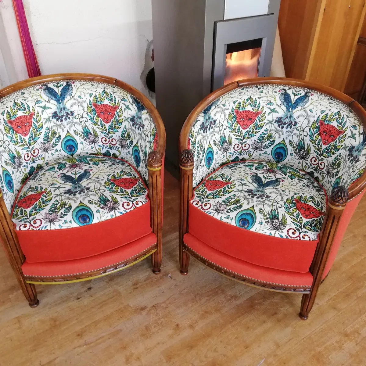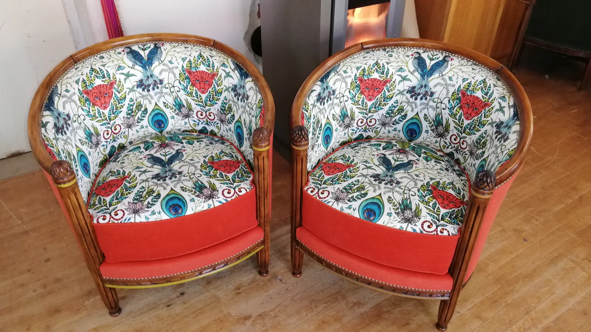Réfection de fauteuils, garniture traditionnelle au crin de cheval. Confection couture d'ameublement sur mesures rideaux, voilages, coussins. Cours de tapisserie loisirs.