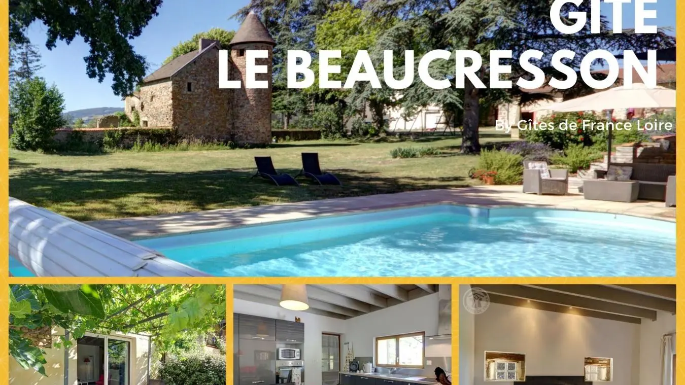Gite au raffinement épuré et équipement moderne où tout est mis en oeuvre pour vous offrir un séjour agréable et tout confort : le lit équipé d'une couette est fait à votre arrivée et le linge de toilette fourni. La pièce de vie baignée par la lumière s'ouvre sur une terrasse privative ombragée de 15 m². Vous apprécierez le cadre paisible, le parc arboré avec ses 4 tours du 15eme siècle, vestiges de l'ancien château de Beaucresson et la belle piscine ouverte de mai à septembre, le tout partagé avec les propriétaires. Une partie des anciennes douves a été conservée et laissée en eaux. La propriété se situe à cheval sur la commune de Renaison et de St Haon le Vieux à proximité de sites naturels et culturels remarquables. Accès facile depuis Roanne a seulement 12 kms.