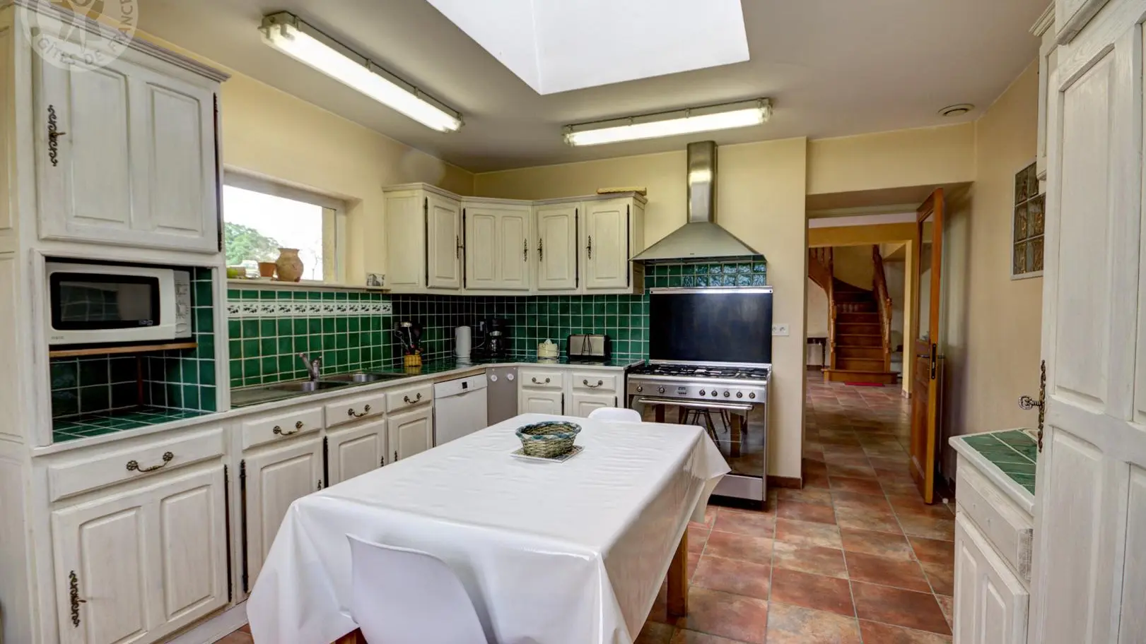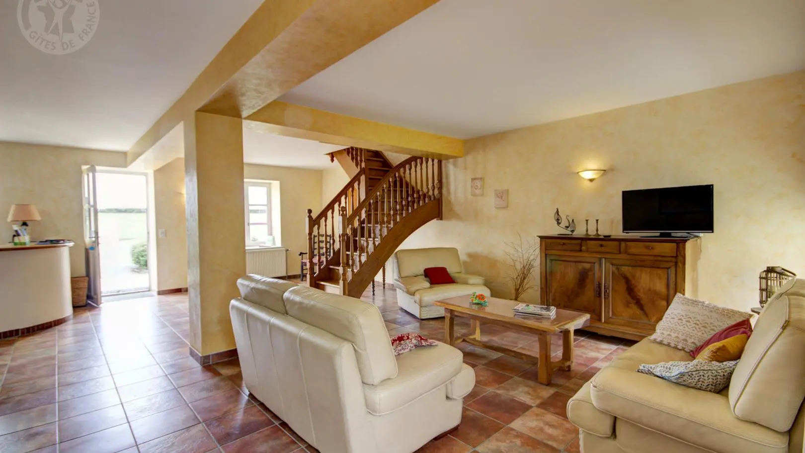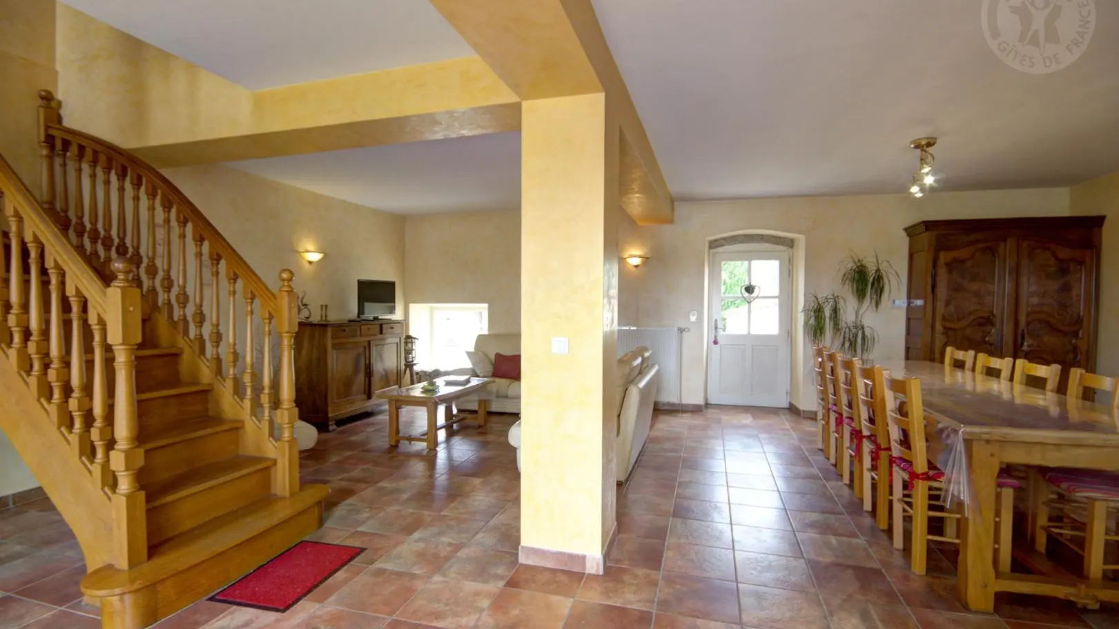Belle maison de campagne de 230 m², mitoyenne avec un gîte 6 places ouvert en 2021. Séjour de 65 m², cuisine toute équipée, 4 grandes chambres avec leurs sanitaires privatifs, couchages en 90x200 et 160x200. Chauffage central, aspiration centralisée... Prix toutes charges comprises. Réduction -20% pour location longue durée en basse saison.