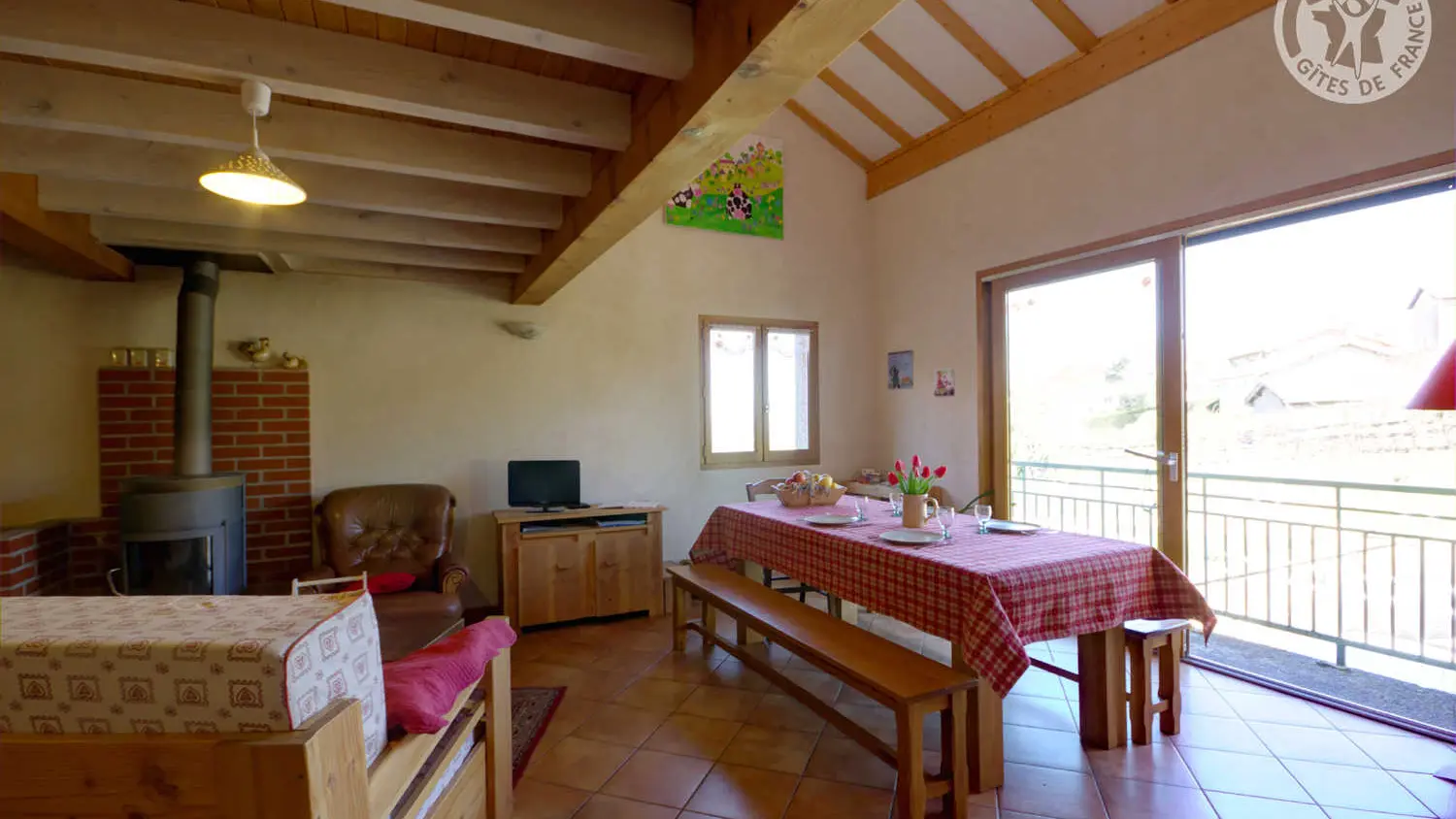 Dans la dépendance d'une ferme typique des Monts du Lyonnais, gîte à l'entrée de la ferme, au calme, à 200 m du bourg d'un joli petit village. Appréciez le confort du gîte, les volumes des pièces et les beaux espaces extérieurs.