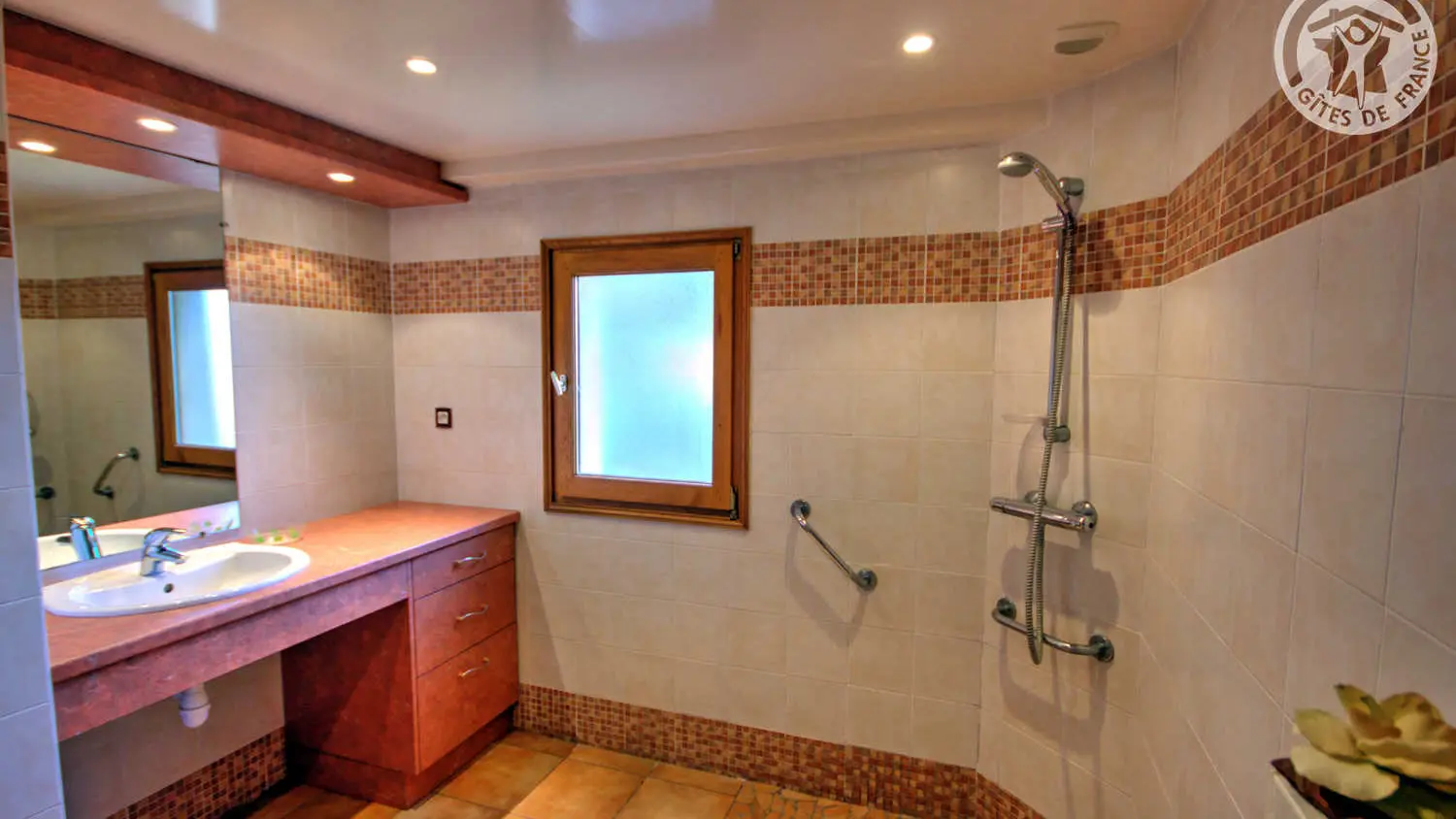 au rez de chaussée : une chambre et salle d'eau/wc accessibles pour 2 personnes .