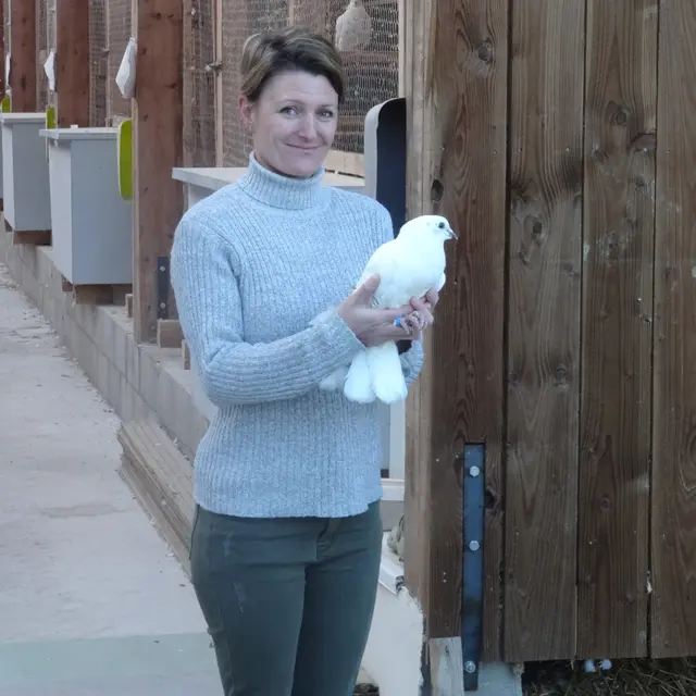 Sur une exploitation d’un hectare située au cœur de la Plaine du Forez, Sandrine a installé son élevage de pigeonneaux. 400 couples dont le bien-être est sa priorité.
