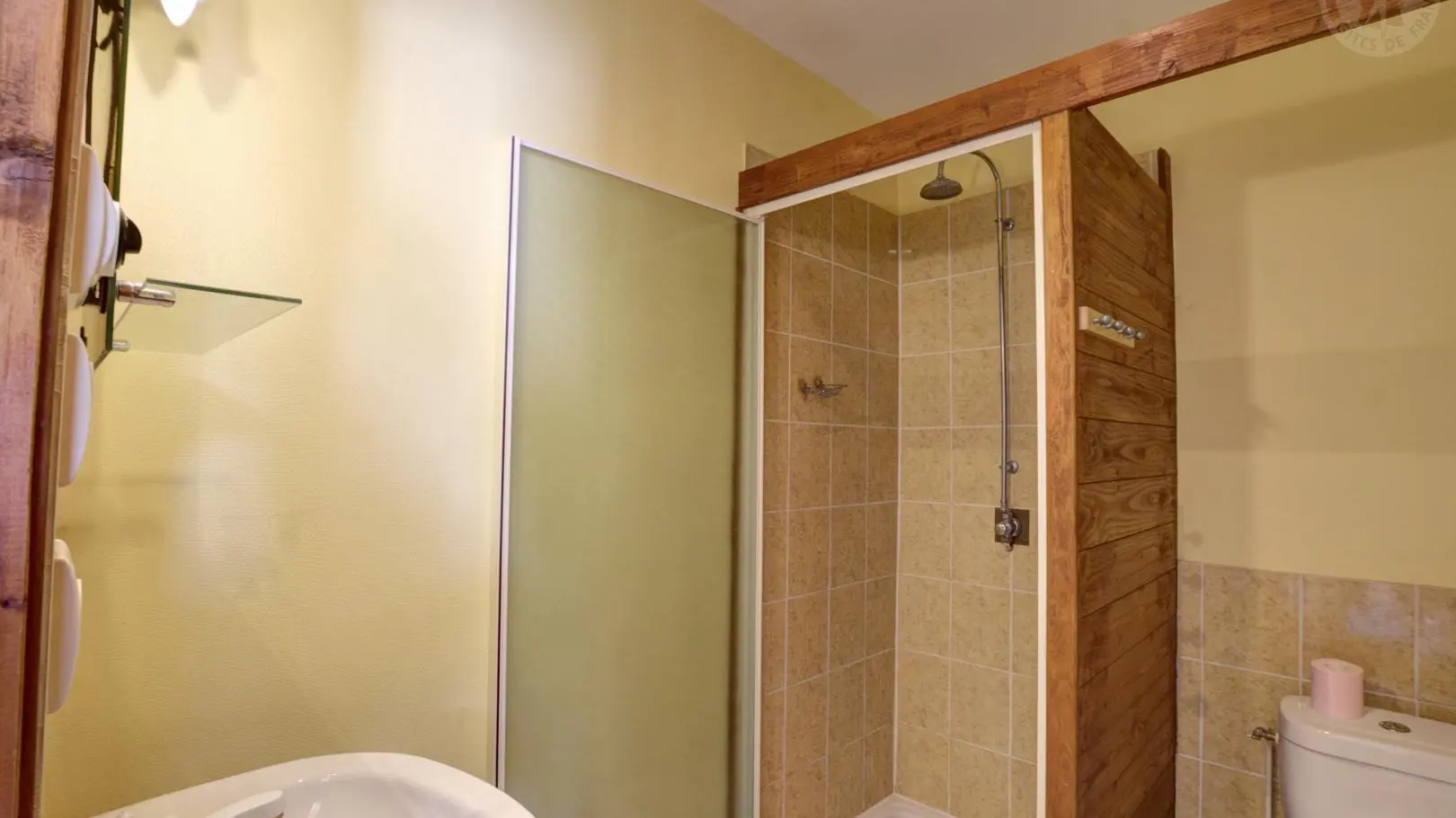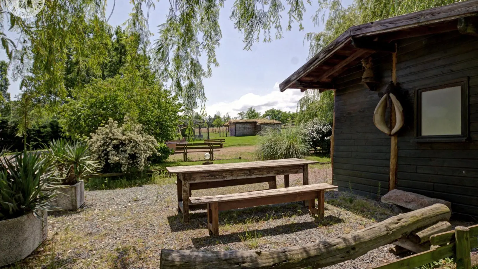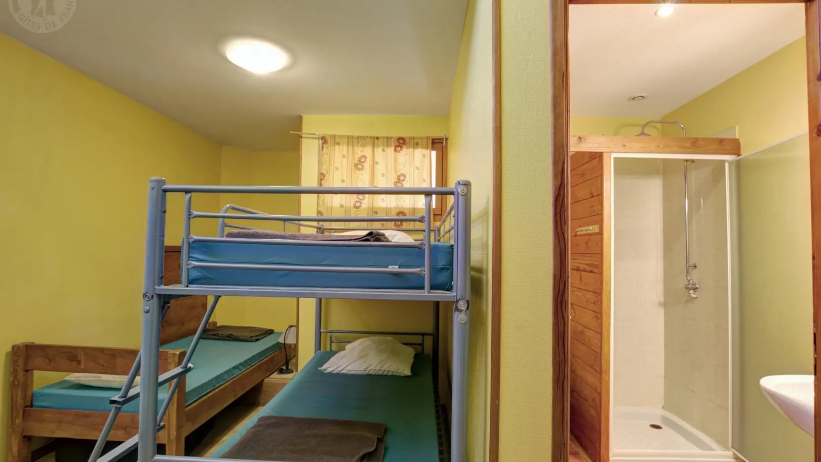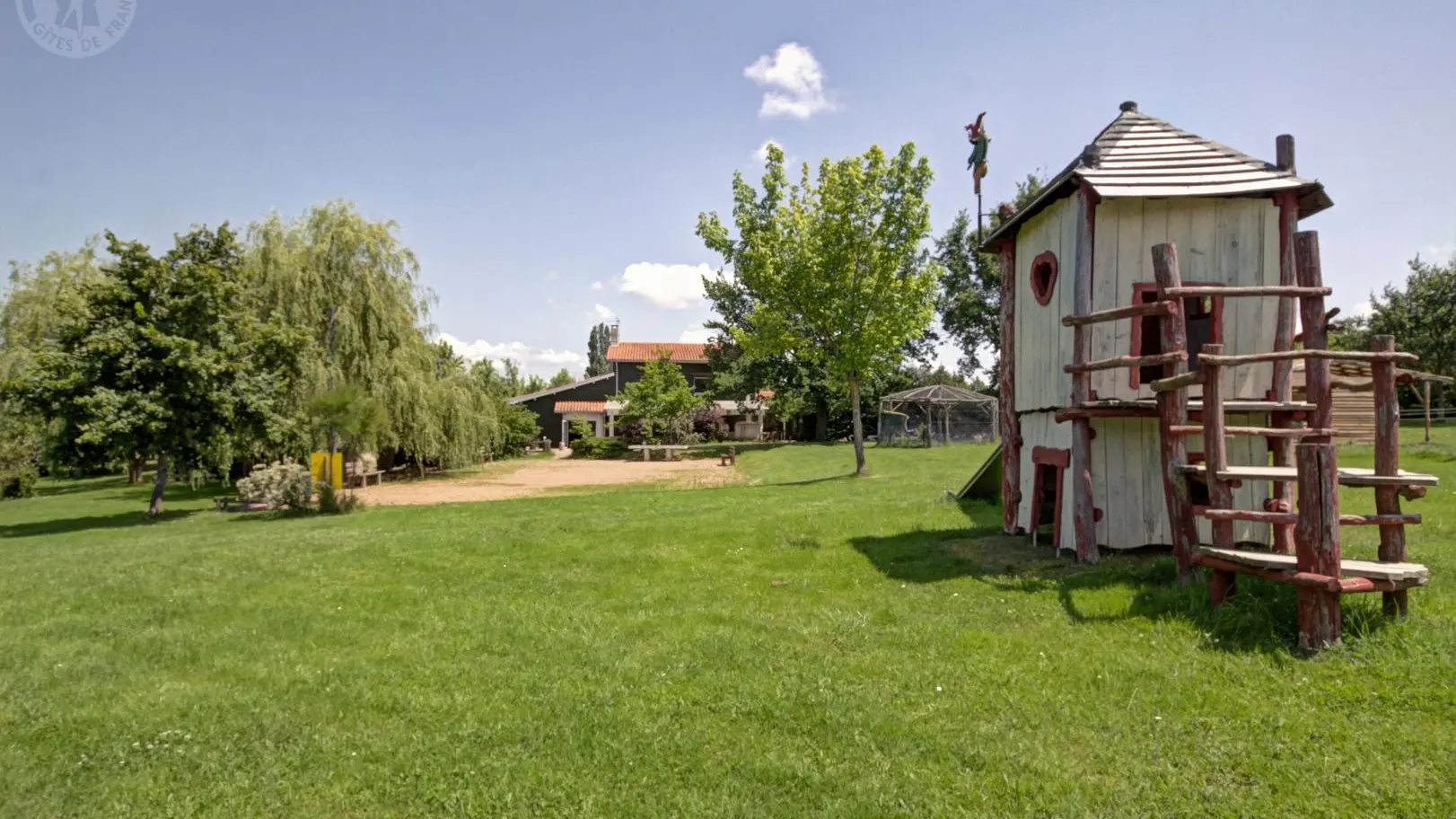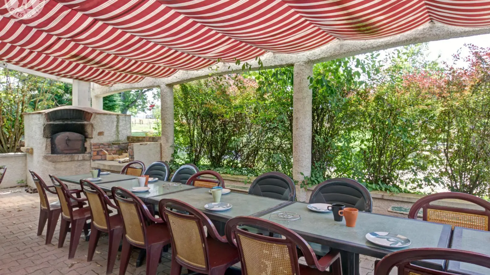 Gîte de groupe de 350 m² pouvant accueillir 34 personnes dans 7 chambres, chacune équipée de sanitaires privatifs. Séjour avec cheminée, tables de ferme, coin-cuisine, salon, l'ensemble de ces pièces avec accès direct sur la terrasse et la pergola.