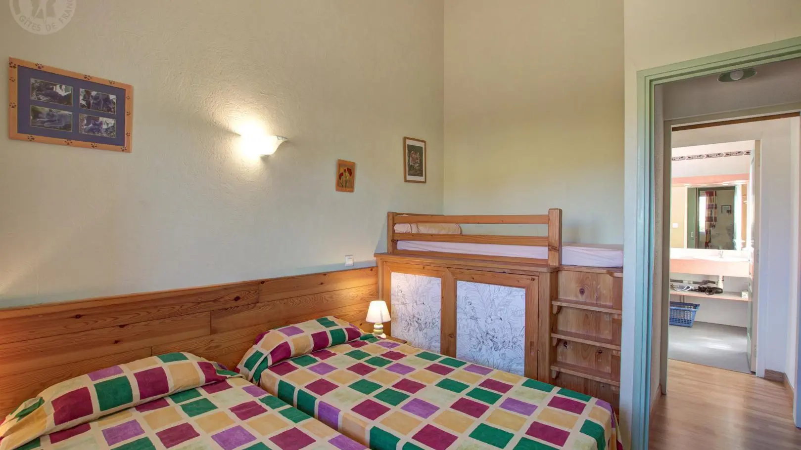 Gîte de 75 m² sur rez de chaussé surélevé, salle de séjour avec baie vitrée donnant sur la terrasse 20 m² et la piscine, poêle godin, 2 chambres. Chauffage central. Parking. Planning de résa sur le site du propriétaire. A proximité de la chambre d'hôtes 3720.