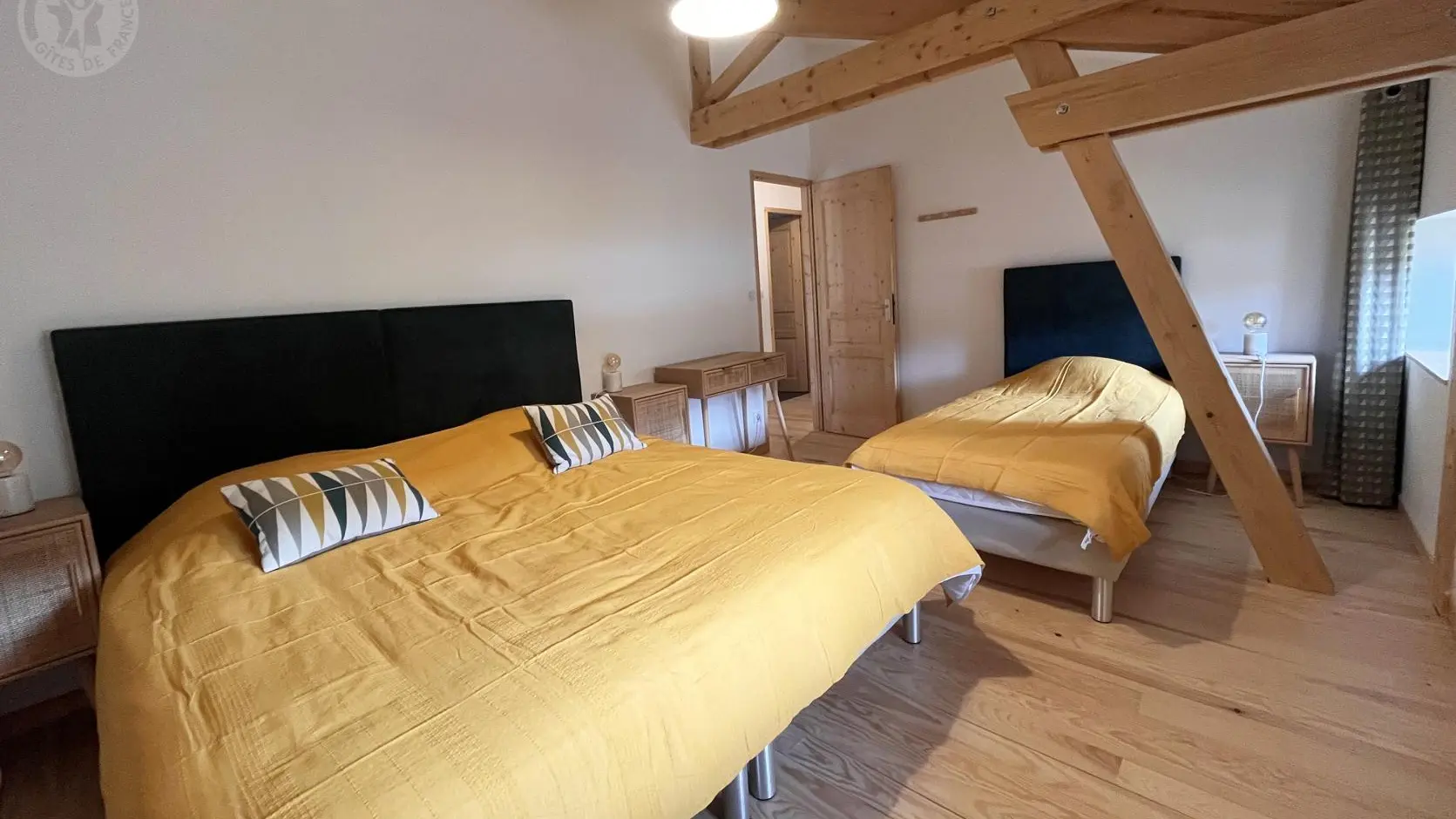 Gîte de 130 m² sur rez-de-chaussée + étage. L'hébergement s'ouvre sur la belle pièce à vivre avec son espace repas et détente, la cuisine est attenante et dispose d'un accès direct à l'agréable terrasse en bois privative de 35m². Un sanitaire complet est aménagé PMR avec douche, vasque et WC. A l'étage, on retrouve les trois chambres (3 lits 90 / 1 lit 140 / 4 lits 90), la salle de bains et le WC indépendant.