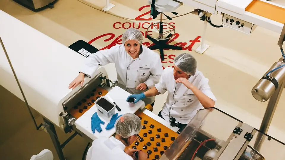 Pour les curieux qui veulent voir ce qui se trame en coulisses, cap sur la passerelle de la Chocolaterie. Avec un salarié-guide, on surplombe les ateliers de confiserie et on découvre les secrets bien gardés de fabrication. Ou alors on enfile son tablier : place à l’atelier DIY où chacun peut créer sa tablette de chocolat sur-mesure.