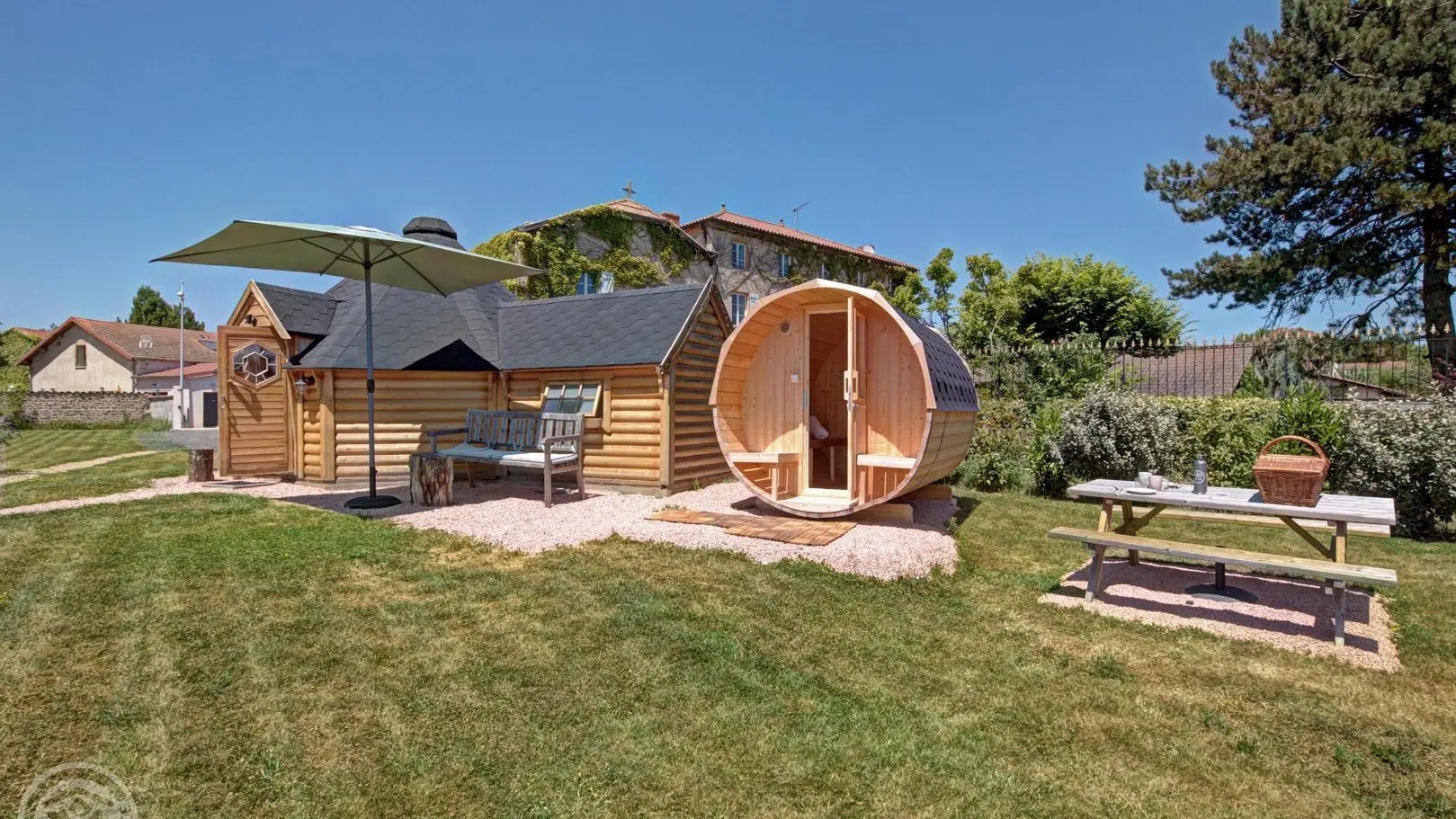 Kota "Laponie" : Offrez-vous une escapade en duo ou en famille dans le Kota "Laponie", un cocon finlandais de 21 m² au cœur du Roannais. Il accueille jusqu'à 4 personnes avec un lit 160x200, un canapé convertible et une salle d'eau privative avec douche, vasque et WC. Un sauna en forme de tonneau est disponible en option. Son ambiance nordique invite à la détente après une journée de découvertes. Kota "Canada" avec Jacuzzi Privatif : Succombez au charme du Kota "Canada", un nid douillet de 21 m² pour 2 personnes. Son grand lit 160x200, sa salle d'eau privative et son espace cosy vous assurent confort et intimité. Son atout majeur ? Un jacuzzi privatif sous abri, avec vue sur la nature. Kota "Alaska" avec Jacuzzi Privatif : Vivez une parenthèse nordique dans le Kota "Alaska", parfait pour 2 à 4 personnes. Il propose un lit 160x200, un canapé convertible et une salle d'eau privative. Après une journée d'exploration, détendez-vous dans votre jacuzzi privatif face à la nature. Les Cabanes du Grand Nord vous permettent de vous ressourcer dans un cadre champêtre. Profitez de randonnées, balades en vélo ou VTT dans la campagne vallonnée du Roannais. Découvrez la gastronomie locale dans les villages voisins, ou rendez-vous au lac de Villerest pour une journée de détente. Un cadre naturel et authentique qui comblera vos envies d'évasion. L'atout principal de ces cabanes réside dans leur atmosphère intime et relaxante, les Kotas "Canada" & "Alaska" disposent d'un jacuzzi privé pour un moment de bien-être en toute tranquillité. Prolongez votre soirée romantique avec un panier repas du soir sur réservation (entrée, plat chaud, fromage, dessert, vin inclus), livré directement dans votre cabane. Chaque matin, vos petits-déjeuners sous forme de panier pique-nique seront livrés à votre porte pour que vous puissiez les savourer tranquillement dans votre Kota. Un séjour parfait pour se ressourcer, se reconnecter à la nature et savourer chaque instant.