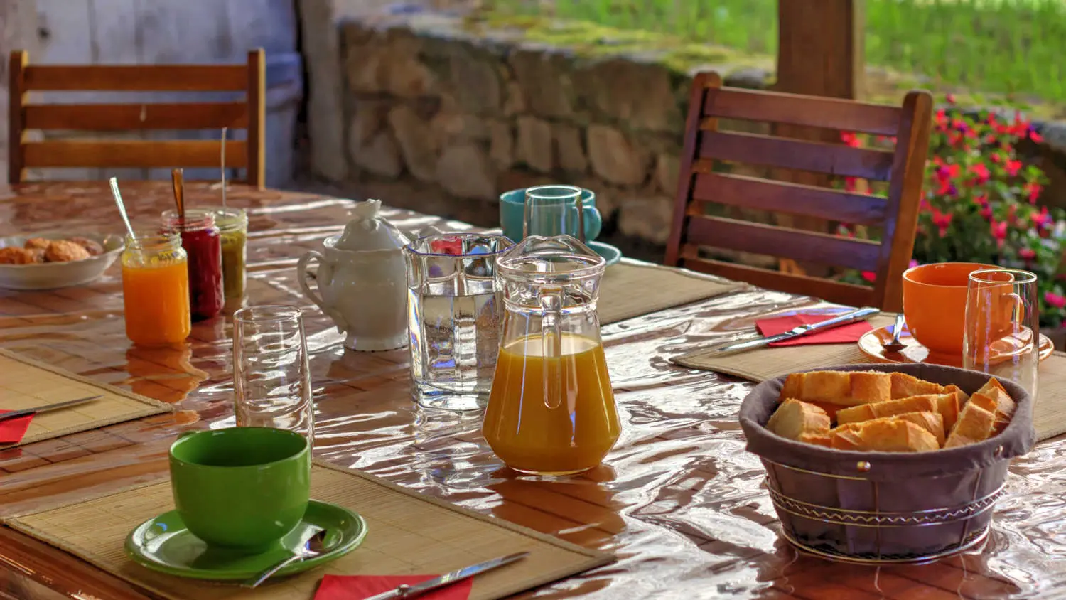 Vous pourrez vous reposer ou prendre vos repas à l'ombre du chapi forézien entre les murs de pierres, les massifs de fleurs et la pelouse.