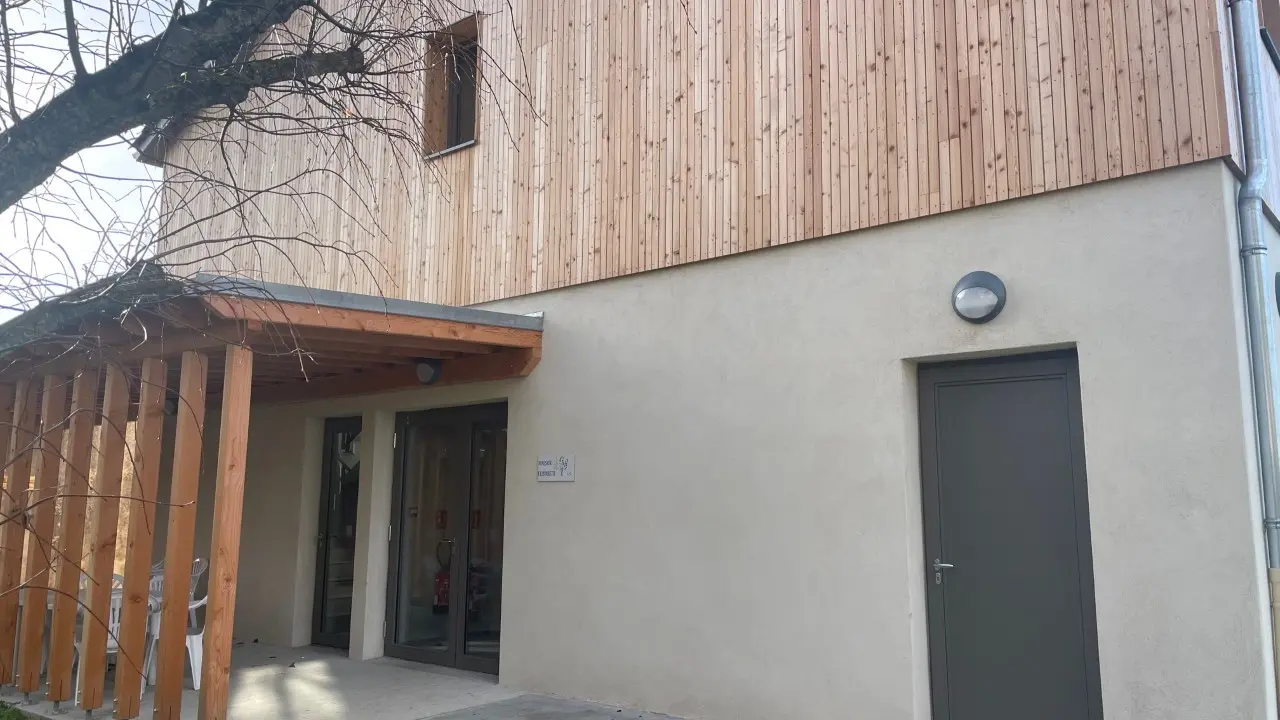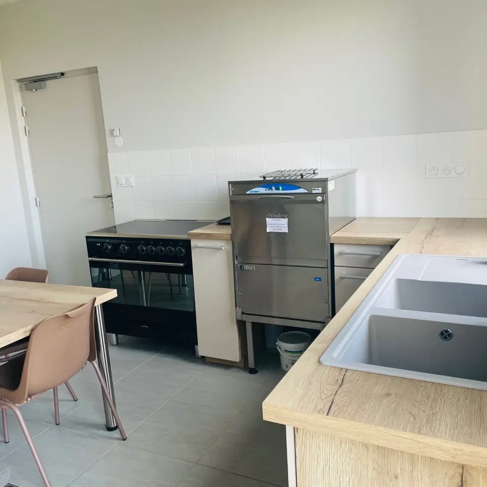 Construction neuve. Cette maison comprend une vaste salle séminaire conférence (92m²), une cuisine indépendante, 7 chambres à 2 lits avec salle de bain-wc, . Une galerie extérieure permet de circuler à l’abri, pour mieux accueillir les personnes.