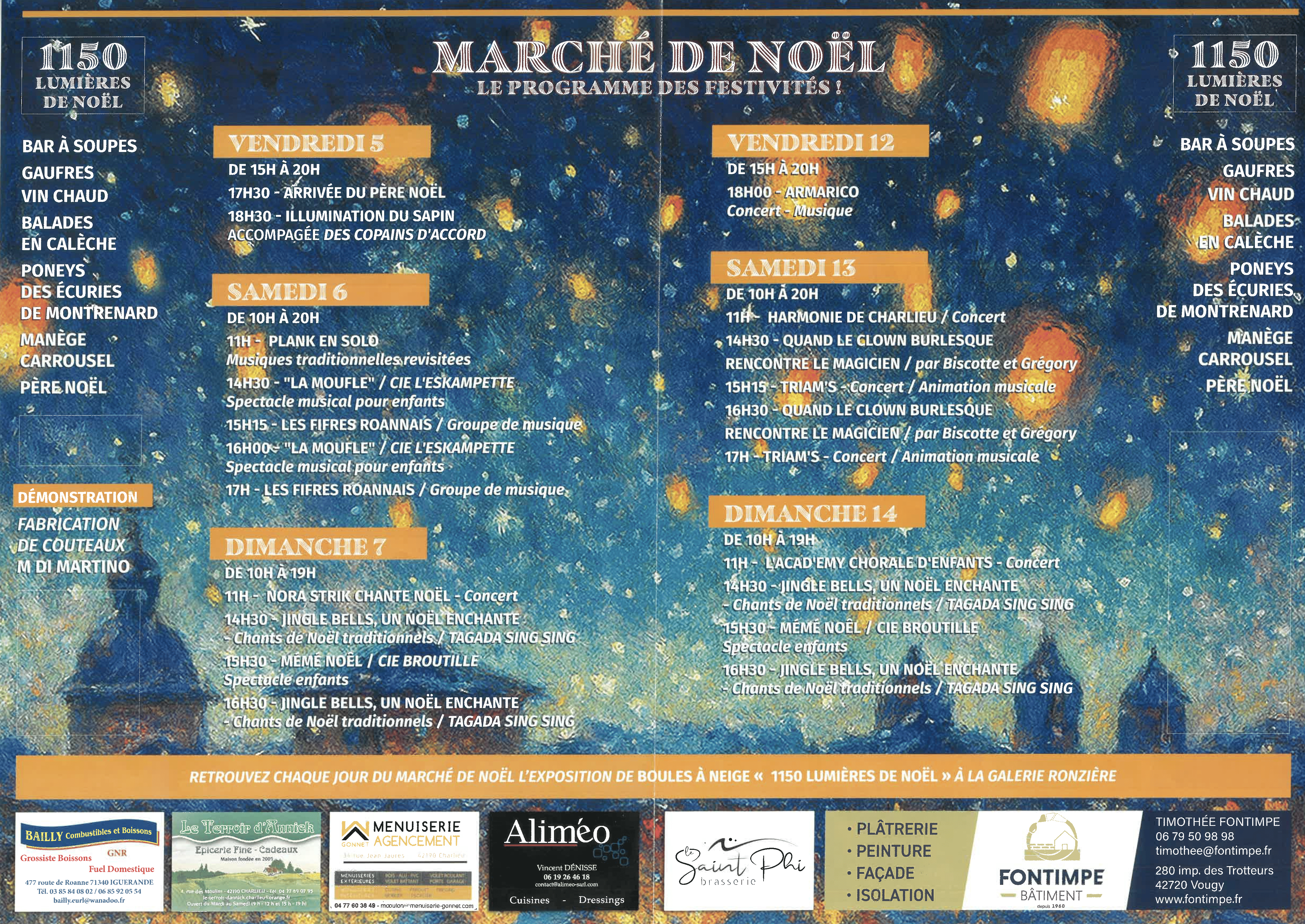 Et aussi : Bar à soupes, gaufres, vin chaud, balades en calèche, poneys des écuries de Montrenard manège carrousel, Père Noël.