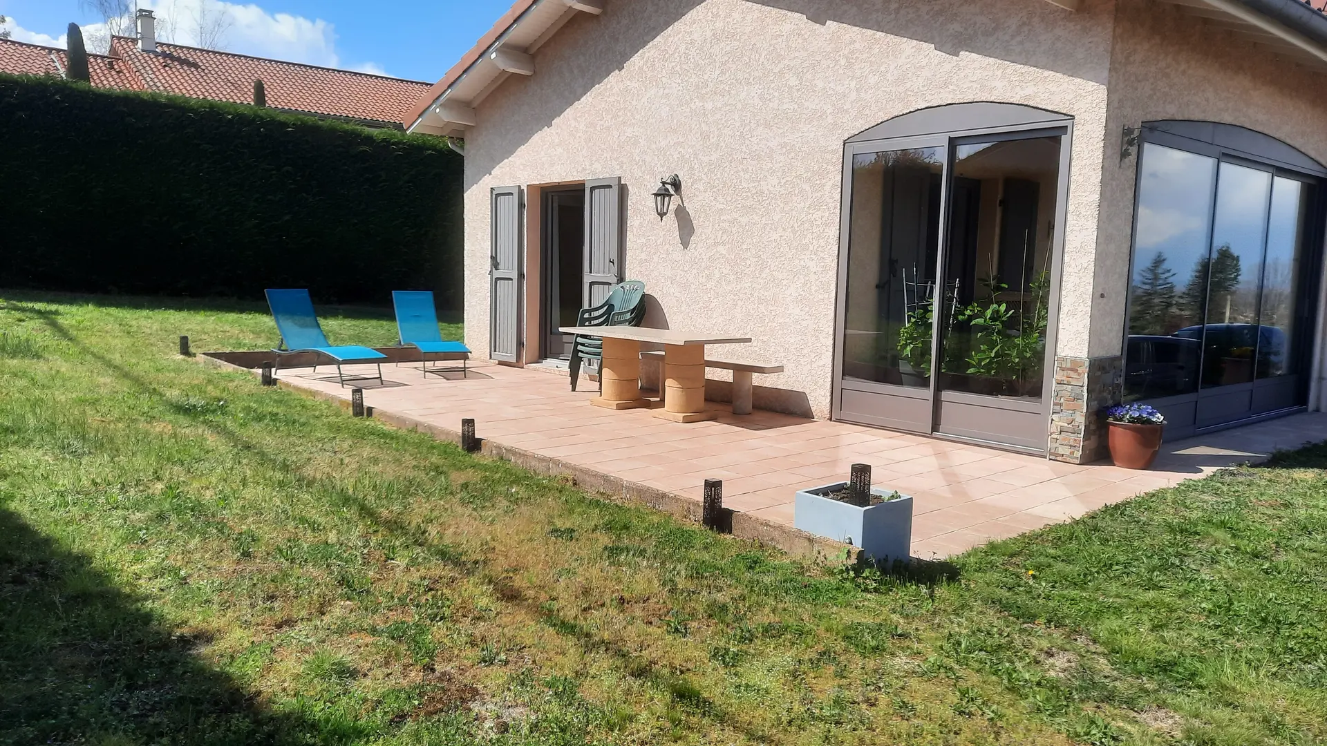 Maison individuelle située dans un quartier calme, avec terrain clôturé.