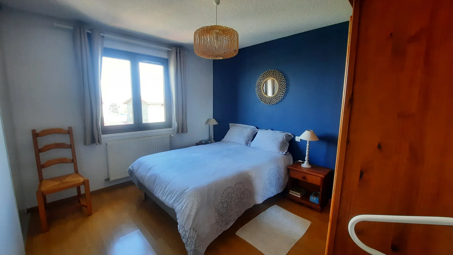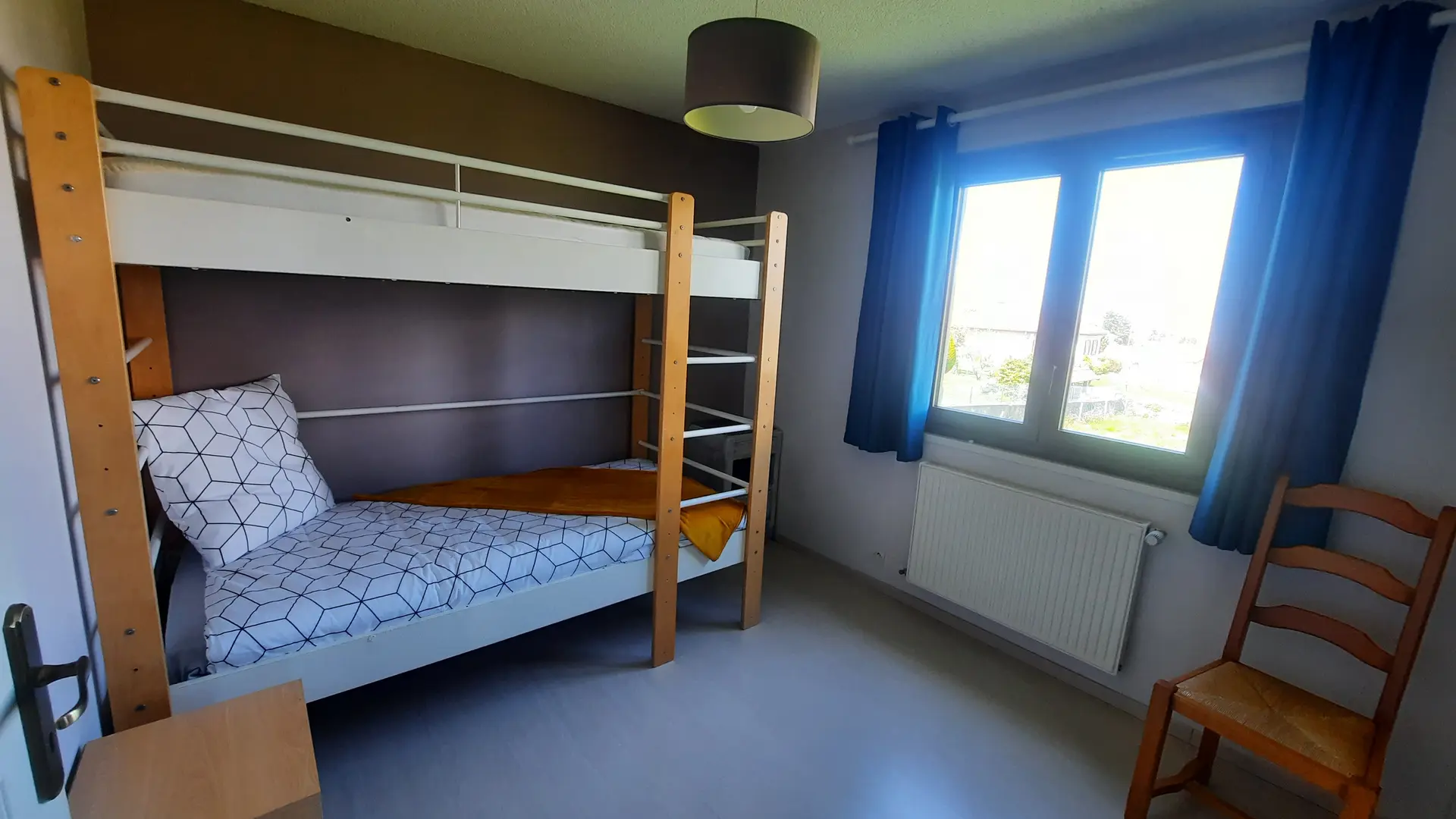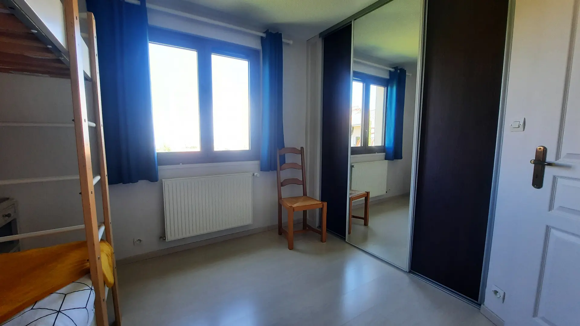 3 chambres à l'étage, chacune avec un placard mural. 2 chambres avec grand lit de 140 et 1 chambre avec 2 lits superposés de 90