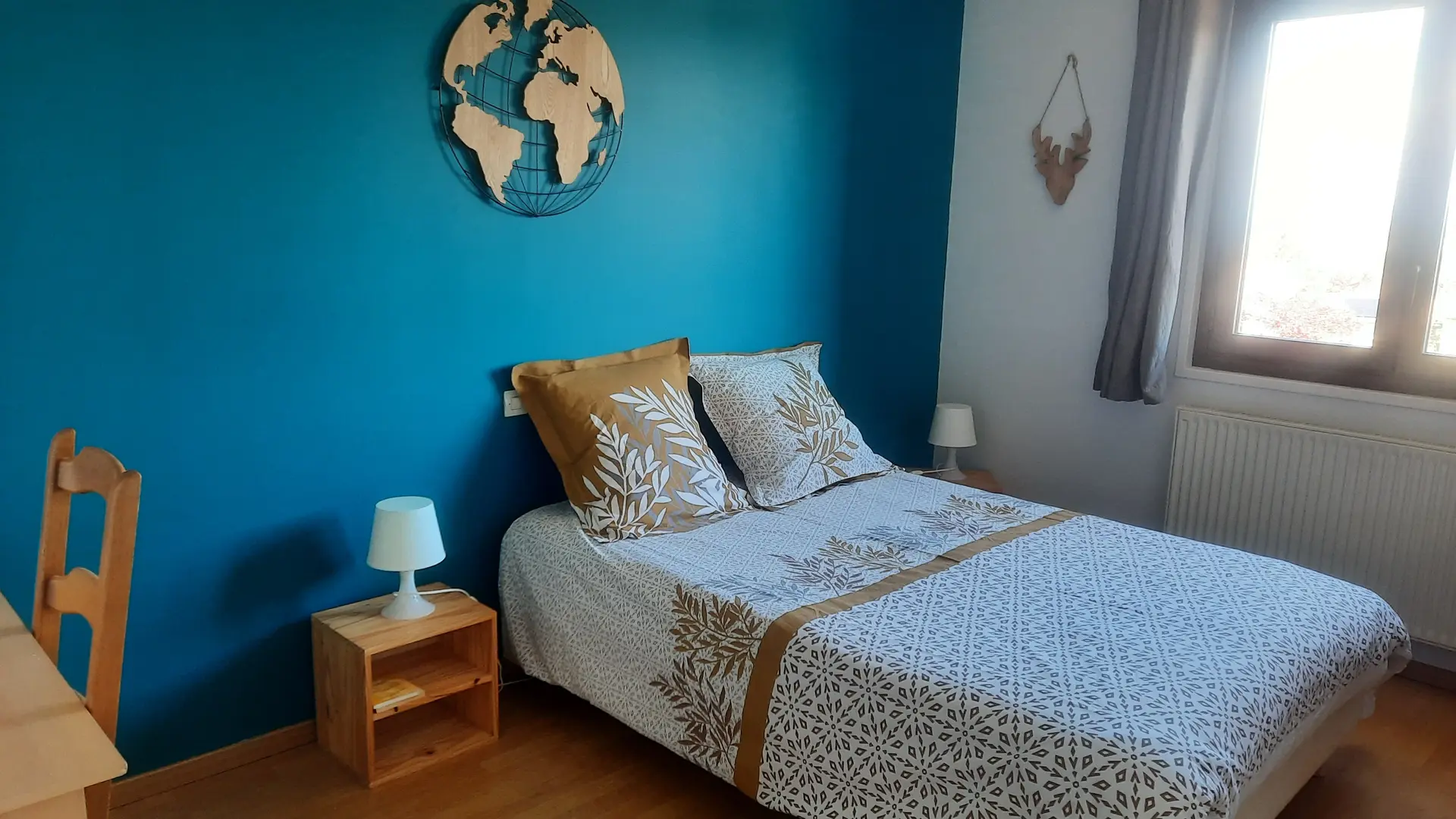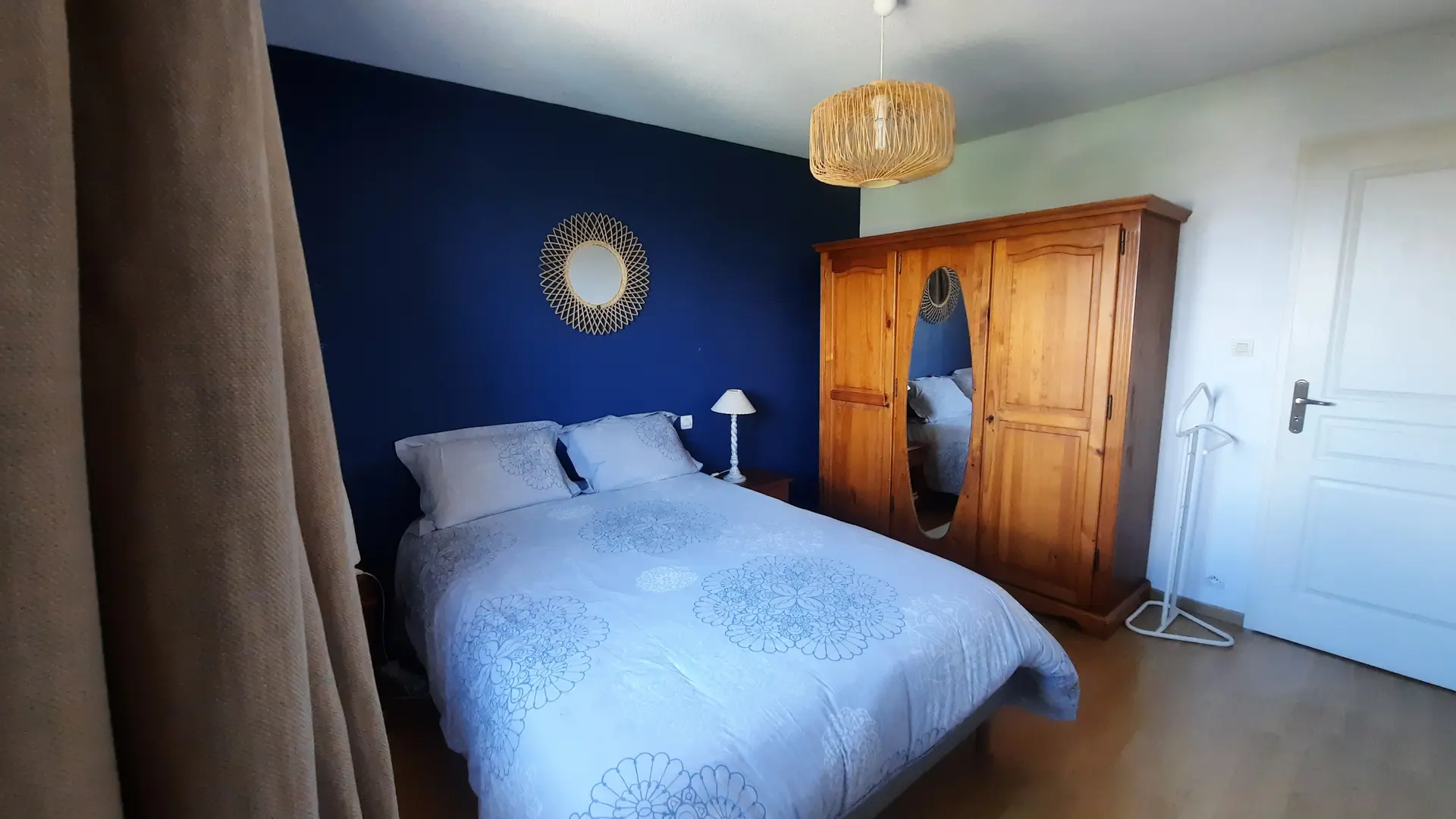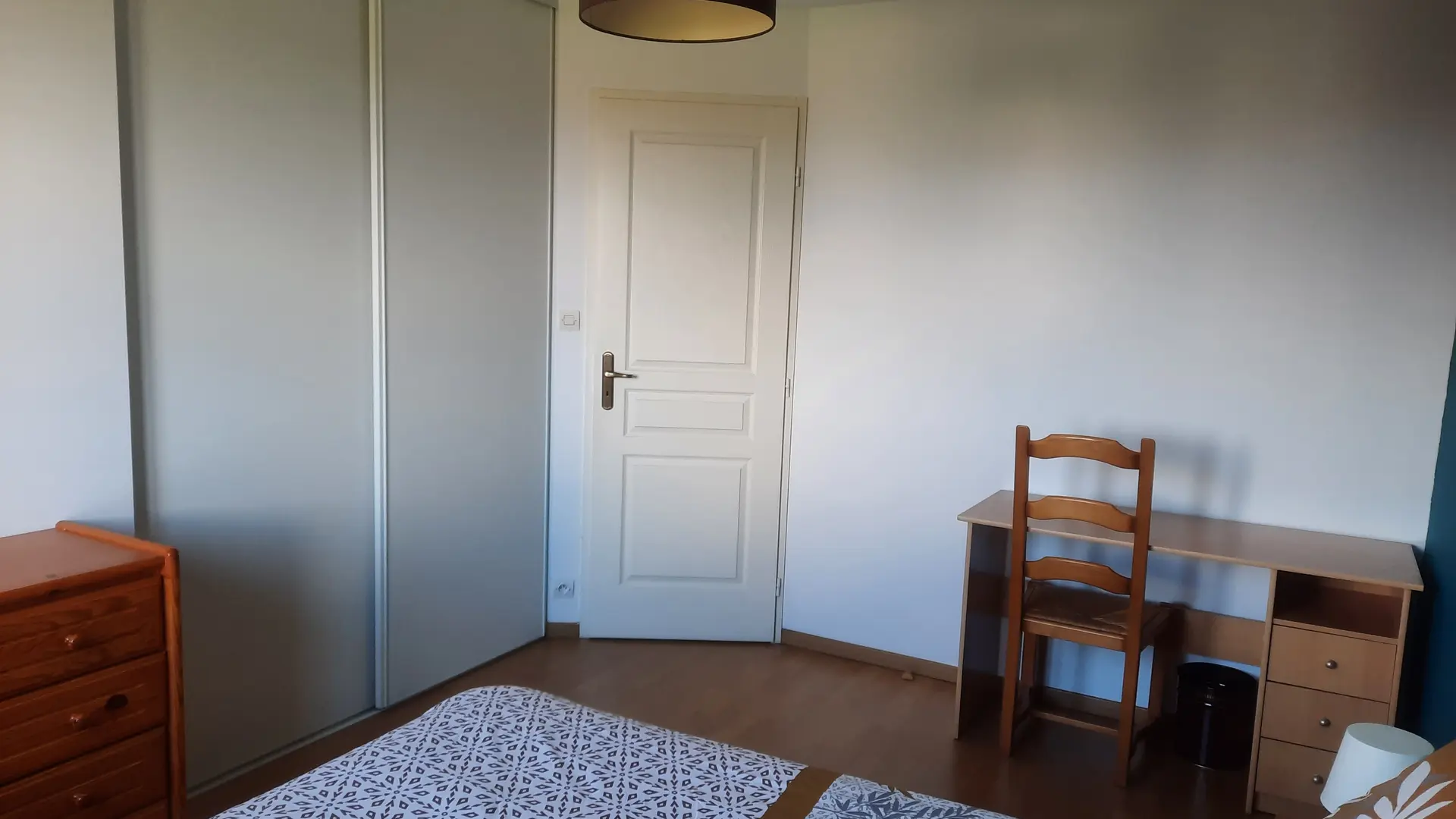 3 chambres à l'étage, chacune avec un placard mural. 2 chambres avec grand lit de 140 et 1 chambre avec 2 lits superposés de 90