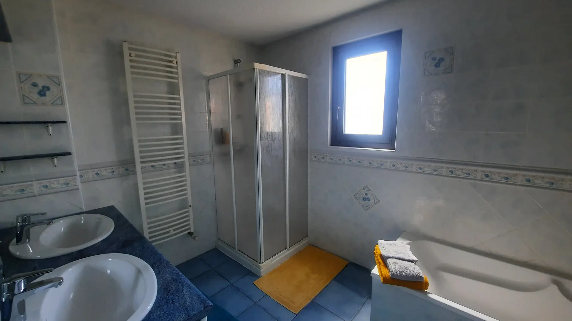 1 salle de bains avec baignoire et douche, WC séparé