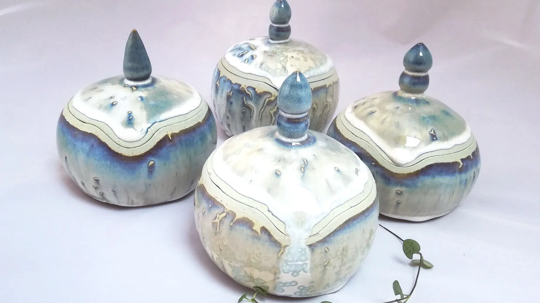 Créées à l' atelier , mes pièces sont une invitation à un voyage poétique et cosmique , une contemplation . Entre les nuances de l' émail bleu que je fabrique je cherche à faire apparaître la beauté d' un ciel clair , doux , cotonneux , tantôt gracieusement nuageux puis plus profond . J' ai voulu mon autre émail blanc doux avec de fines nucléations symbole d'une voie lactée qui en le mariant délicatement à mes bleus donne des effets bicolores de ciel étoilé , de sensations célestes . Je souhaite un univers qui invite à l' apaisement .