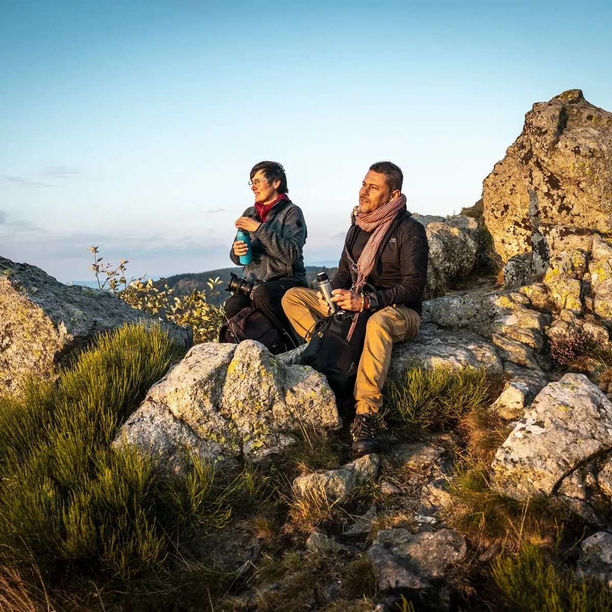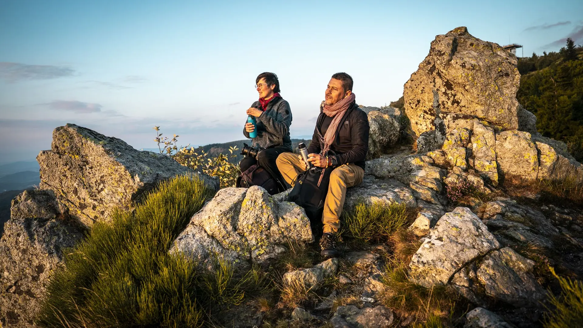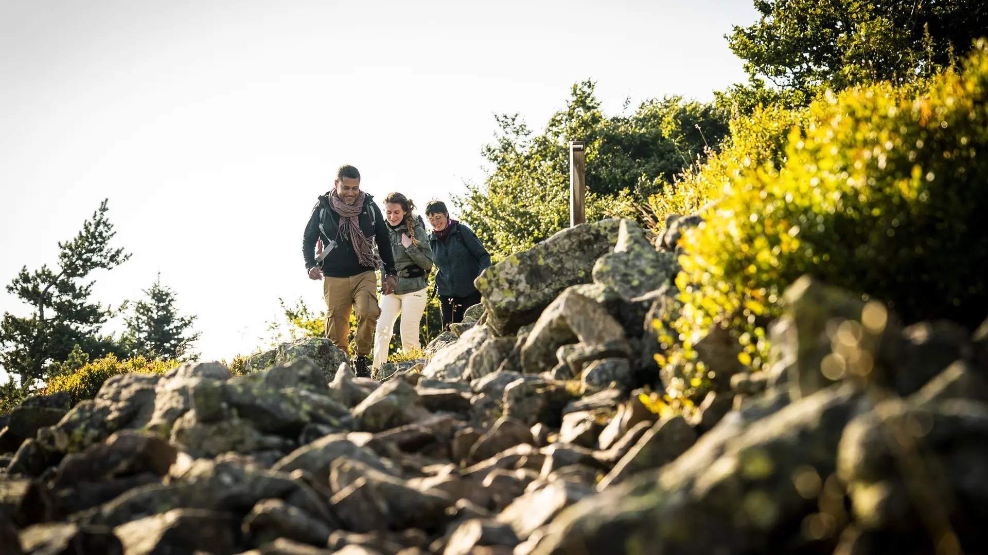 Petit-déjeuner au chalet, puis départ sur un itinéraire plein de surprises avec un retour par le Crêt de la Perdrix, point culminant du massif du Pilat (1432 m) avec de magnifiques panoramas, entre landes, Chirats (éboulis) et forêts de résineux.
