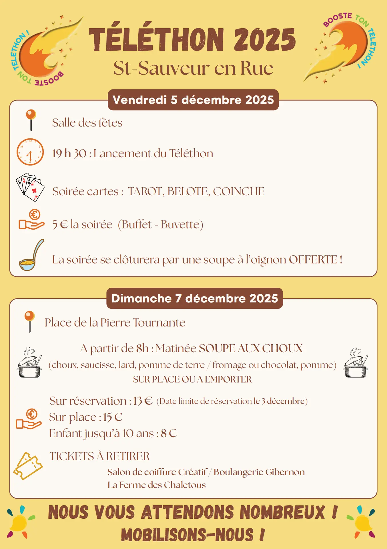 Lancement du Téléthon avec une soirée cartes (tarot, belote, coinche) qui se clôturera par une soupe à l'oignon offerte.