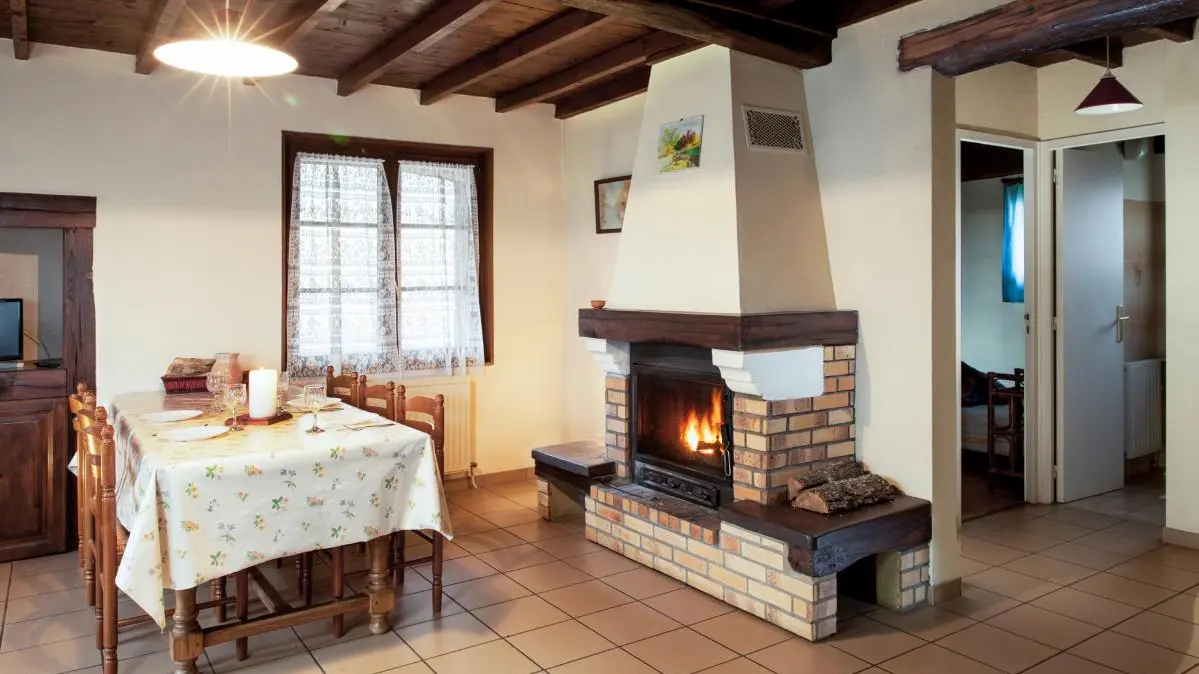 Gîte de 65 m² de plain-pied, salle de séjour avec cheminée, coin cuisine, 2 chambres (possibilité lit bébé). Chauffage central. Gîte mitoyen avec le gîte 2401. Promenade à dos d'ânes pour les enfants. St-Galmier 5 km - Chazelles-sur-Lyon 9 km.