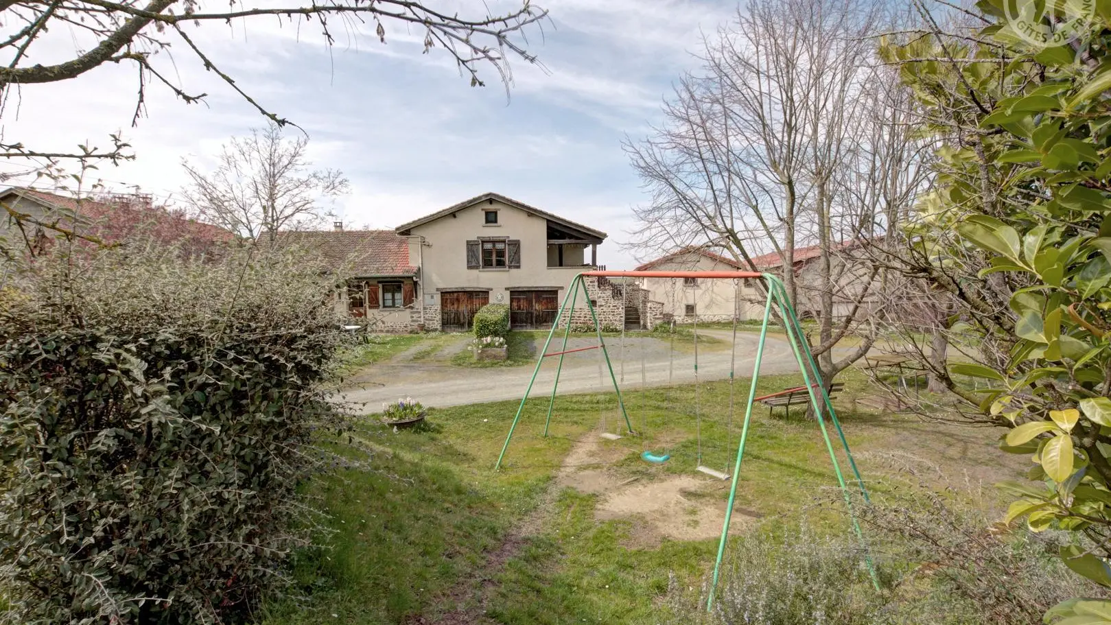 Dans la région du Lyonnais, maison indépendante comprenant 2 gîtes. De beaux extérieurs à disposition : terrain non clos commun de 2000 m², terrasse de 100 m², espace de jeux commun (portique enfants, boules, ping-pong, basket).
