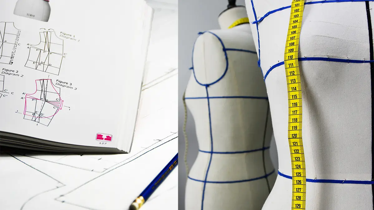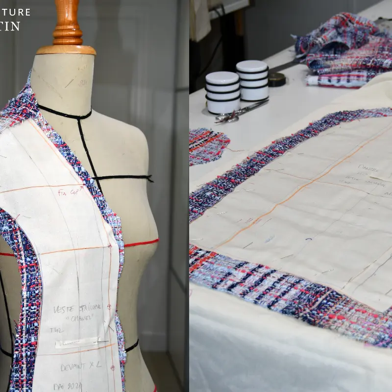 La (le) stagiaire crée sur une feuille à patron et à partir de ses mensurations la construction de sa base de buste ou bien un modèle au choix. Divers étapes : procéder aux élargissements – reporter sur une toile à patron – essayer la toile - reporter les corrections sur la feuille de construction. Selon le choix de modèle le nombre de séquences peut augmenter. Contacter l'atelier pour plus de renseignements.
