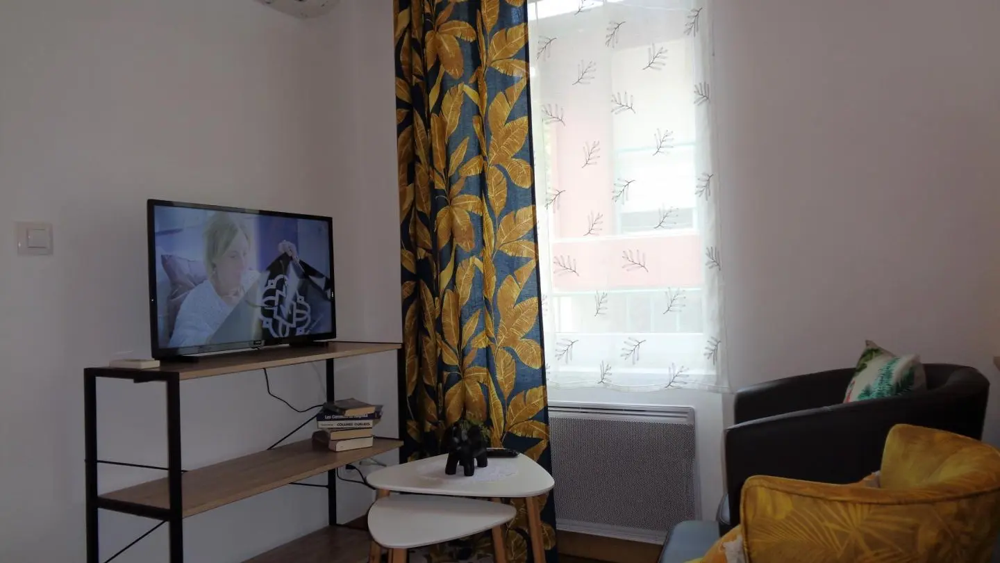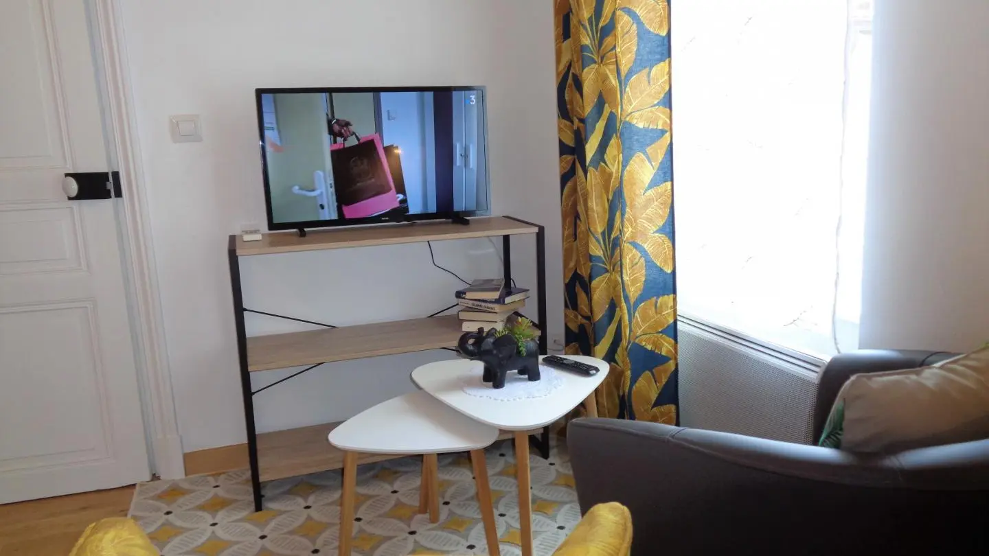 Appartement au cœur de la ville de Roanne de 60m² au 1er étage, sans ascenseur (non adapté aux personnes à mobilité réduite). Il dispose d'une cuisine équipée avec espace repas, d'un coquet salon de détente avec télévision, d'une spacieuse chambre avec un lit 140, et d'une salle d'eau avec WC. Pour plus de confort, les charges, les draps, le linge de toilette et de maison sont inclus dans le prix de location. Marguerite & Daniel qui habitent sur place vous réserveront un bel accueil. A la demande : Lit bébé et chaise haute sur demande auprès des propriétaires.