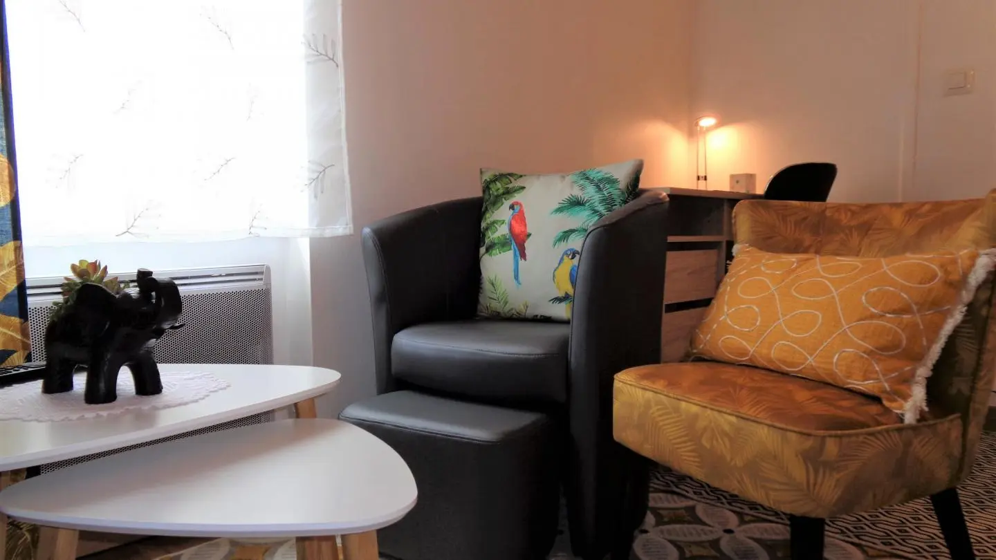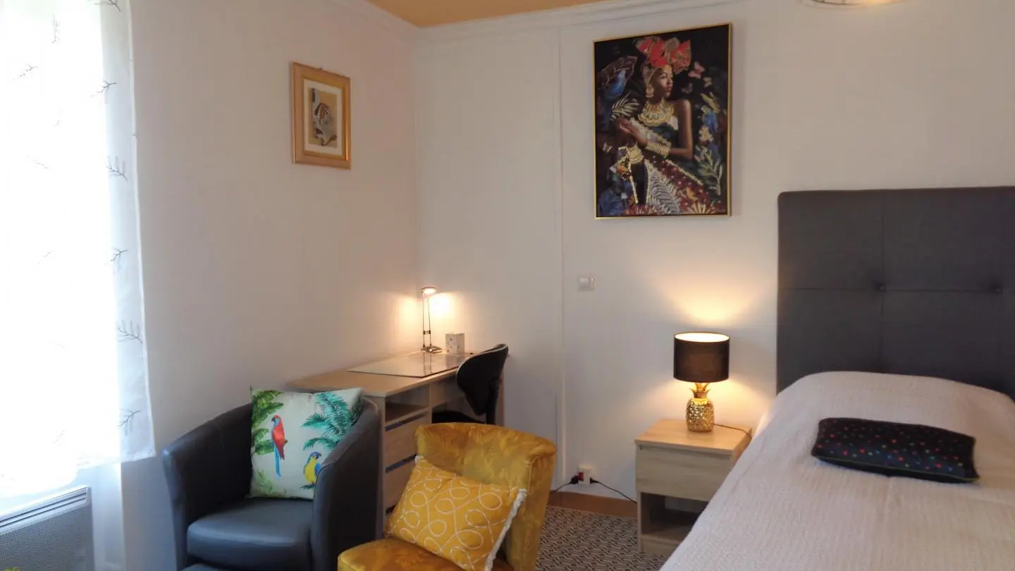 Studio au cœur de la ville de Roanne de 30m² au 1er étage, sans ascenseur (non adapté aux personnes à mobilité réduite). Il dispose d'un cuisine équipée, d'une chambre avec deux lits 90 (pouvant sur demande être jumelés en un lit 180) et d'une salle d'eau avec WC indépendant. Pour plus de confort, les charges, les draps, le linge de toilette et de maison sont inclus dans le prix de location. Ce gîte dispose également d'une climatisation réversible. Lit bébé et chaise haute sur demande auprès des propriétaires. Marguerite & Daniel qui habitent sur place vous réserveront un bel accueil.