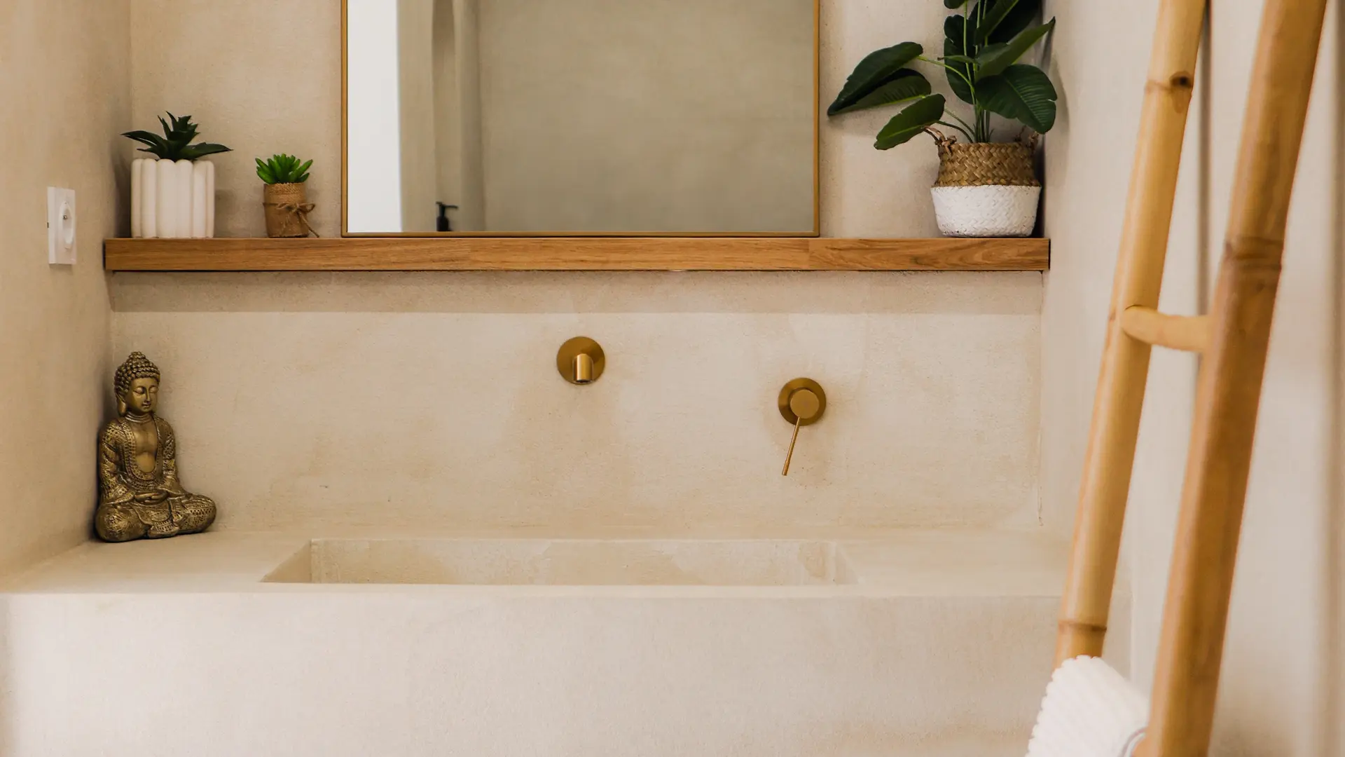 - Une salle d'eau avec une large vasque et une douche spacieuse