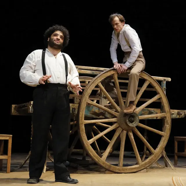 et de morceaux de Lully joués au piano. Le spectateur assiste aux débuts chaotiques de l’Illustre-Théâtre, à son ascension fulgurante, à la querelle du Tartuffe et à la fin solitaire de son chef. C’est l’aventure du directeur de troupe, à la tête de sa caravane, sillonnant les routes de France à la recherche de son public, pour le distraire et le fustiger en même temps. C’est le récit passionnant d’un groupe qui ouvre une nouvelle brèche dans l’Art : celle d’une joyeuse révolte.