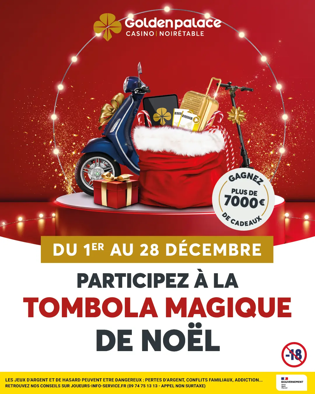 Tout au long du mois, participez à notre Tombola Magique de Noël et tentez de gagner semaine des cadeaux extraordinaires.