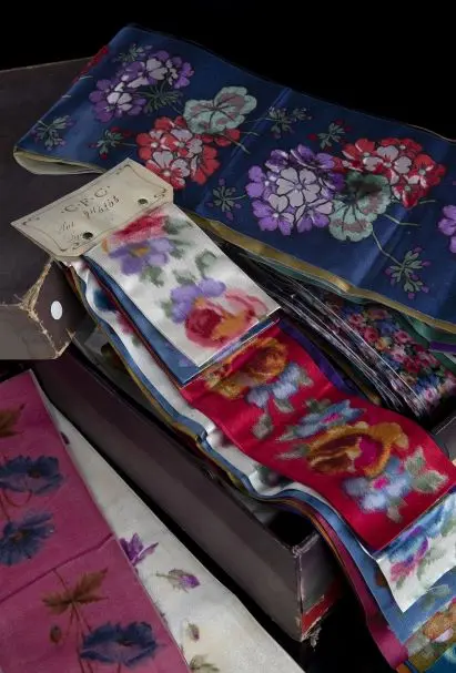 Découvrez les métiers au féminin : ouvrières en soie, moulineuses, dévideuses, ourdisseuses, passementières et épouses de passementiers, plieuses, en parcourant la collection rubans.