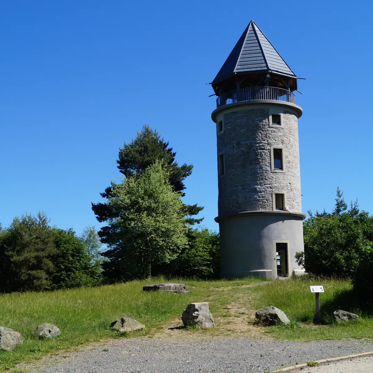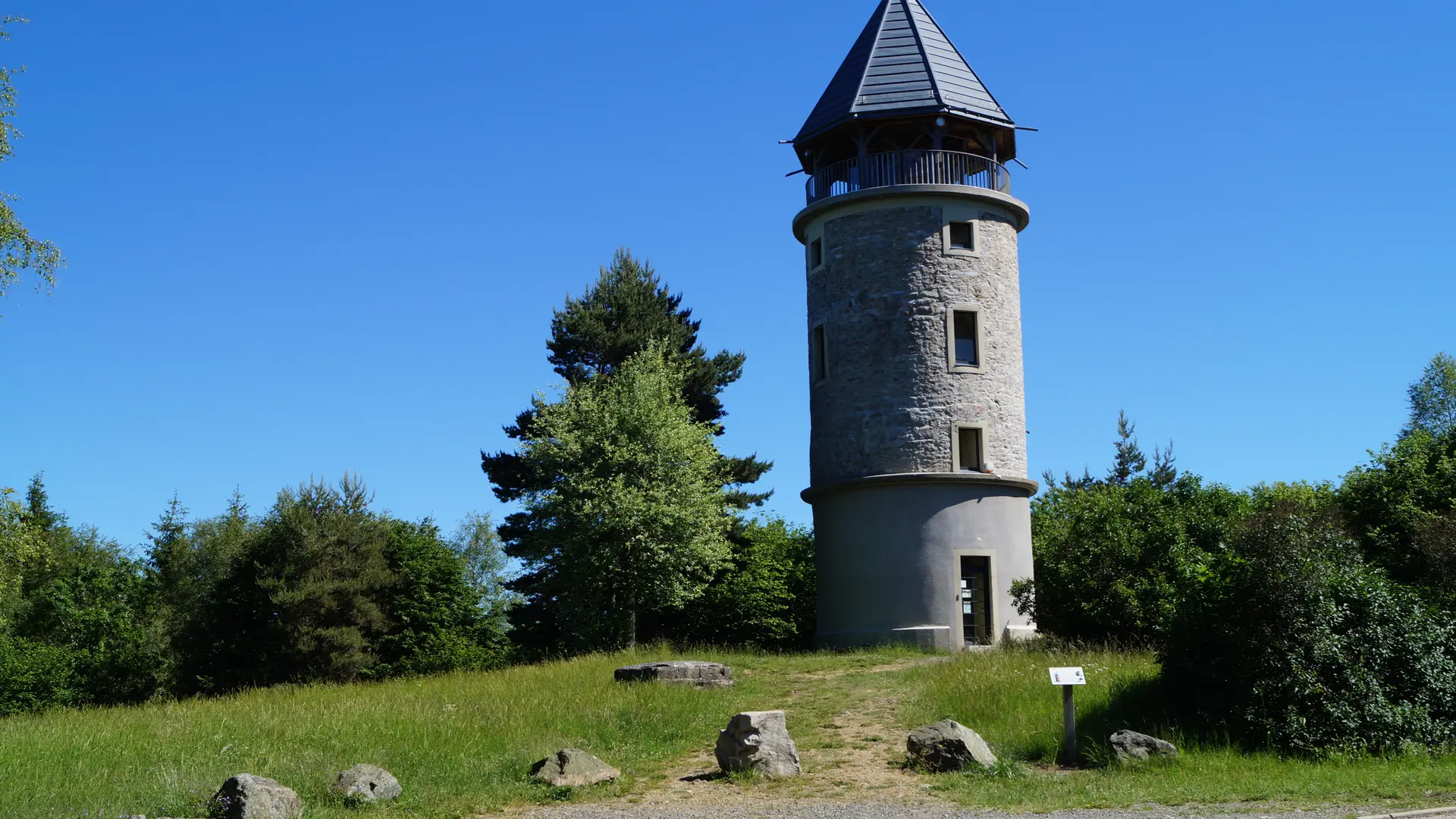 Balade extraordinaire qui en plus d’emprunter une partie du GR®7, transporte le vététiste à la Tour Matagrin, point culminant de Forez-Est. Du haut de la tour, la vue est à 360 ° permet même d’apercevoir le Mont-Blanc !