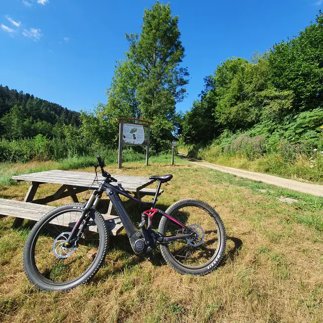 Ne quittez pas les sentiers. Non conseillé aux VTTAE car il faut pousser le vélo.